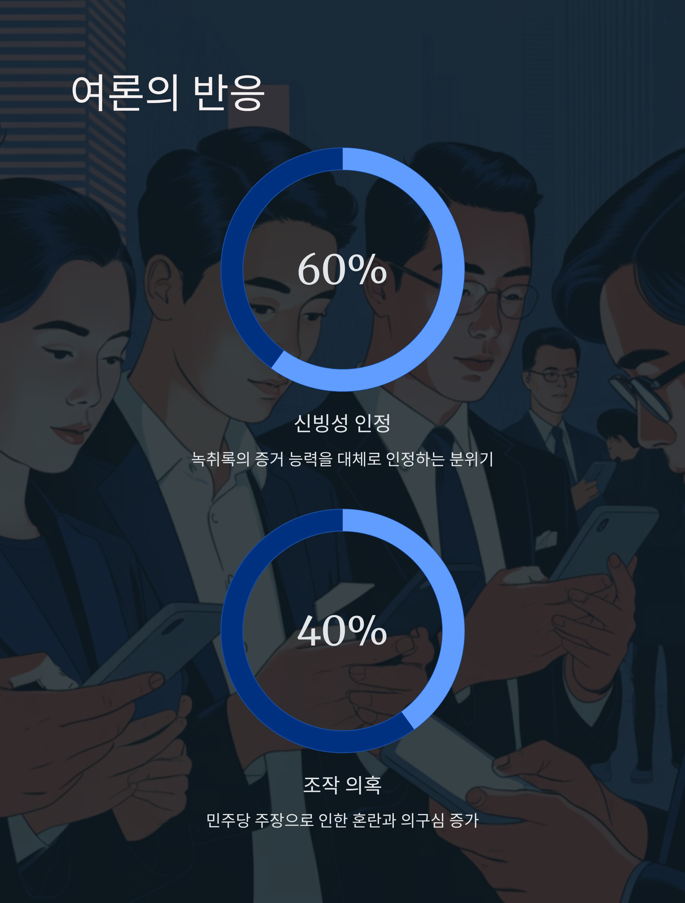 - 녹취록 조작 논란은 사건 재판 결과와 국민 여론에 미칠 영향을 가늠할 수 없는 민감한 사안으로, 엄격하고 투명한 조사와 재판 과정이 요구됩니다.