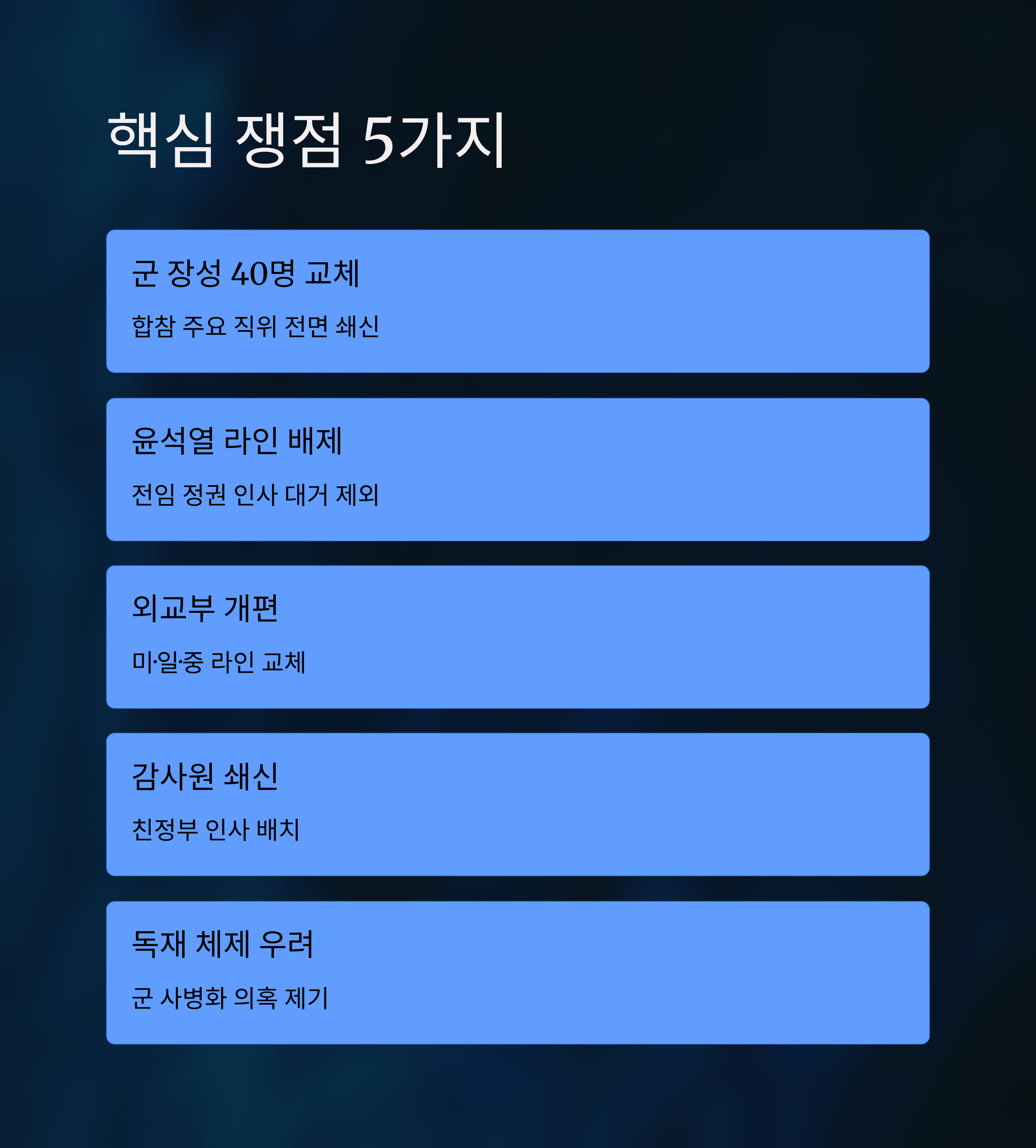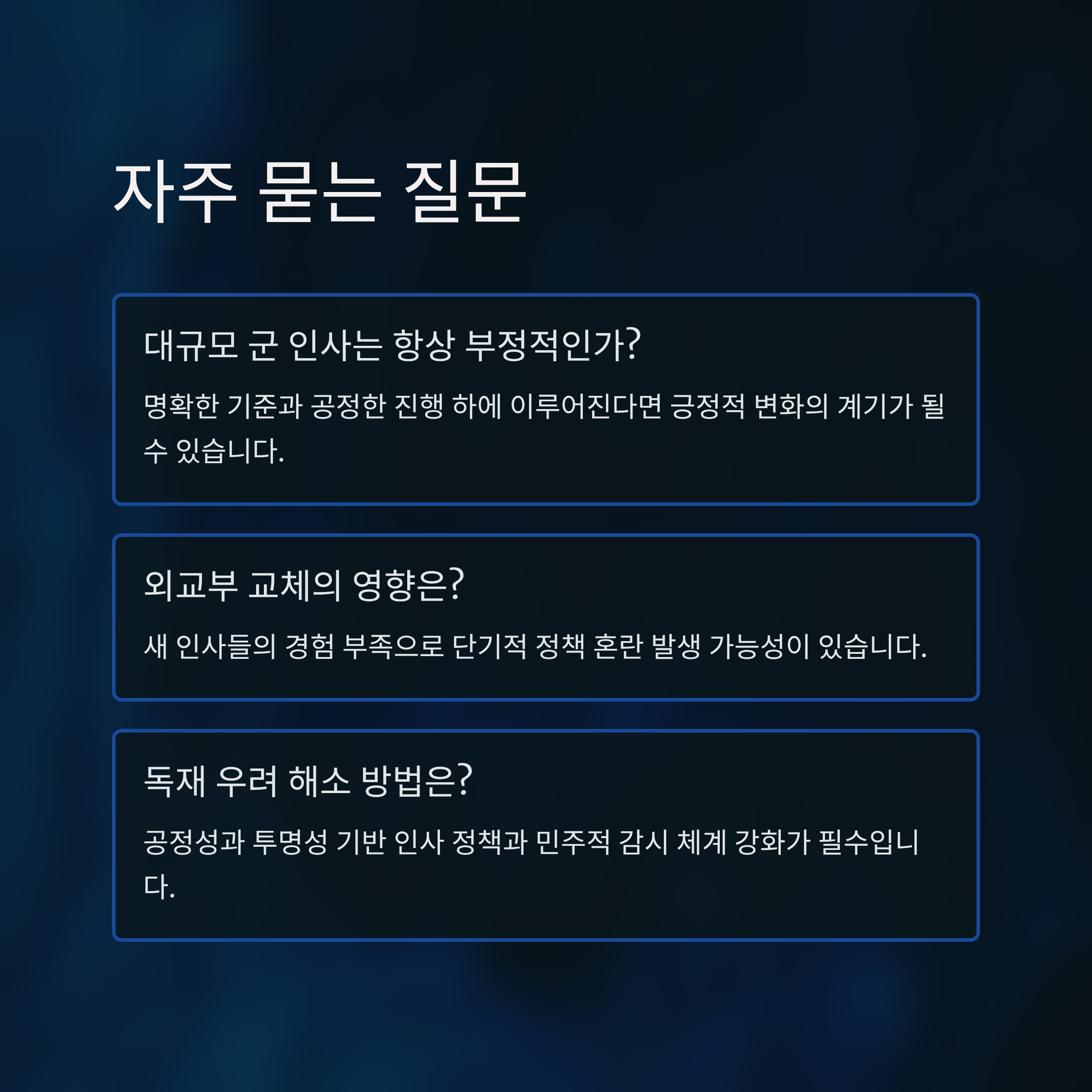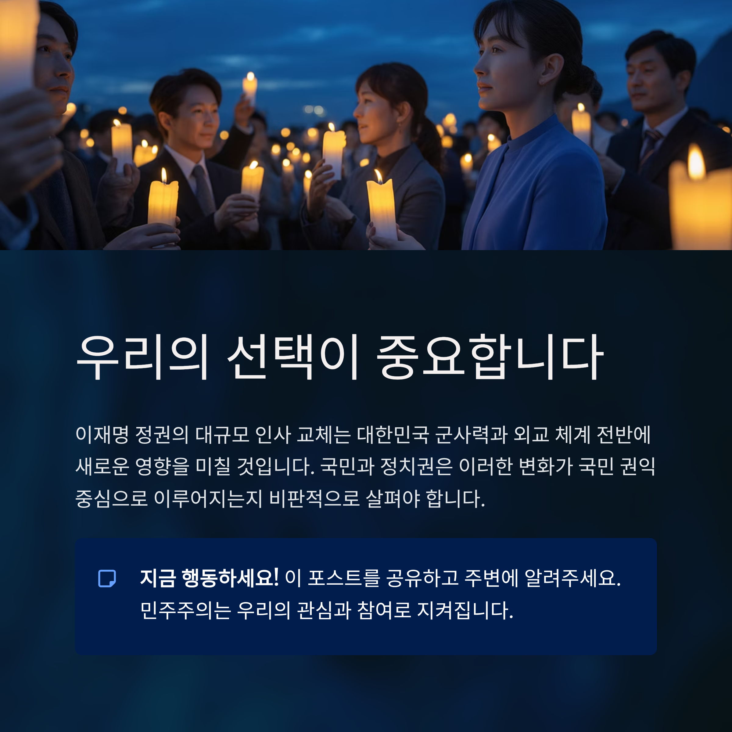 관련 태그: 이재명 인사 정책, 군 인사 교체, 외교전략 변화, 독재 체제 우려, 대한민국 안보 정책