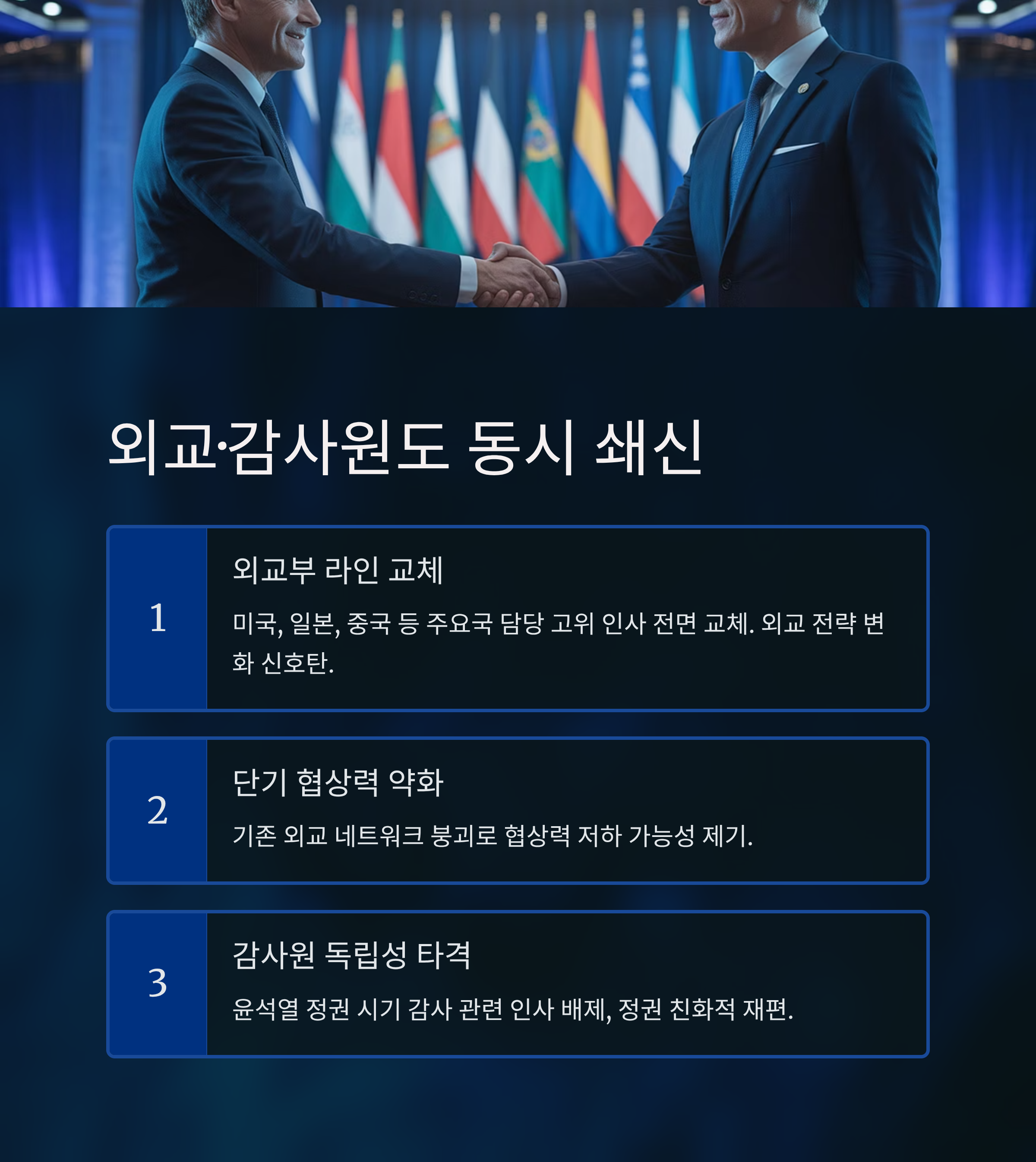 외교 분야에서도 주요 국가와의 관계를 담당하는 고위 인사들이 대거 교체되고 있습니다. 특히 미국, 일본, 중국 등 주요 관계국에 대한 외교 라인이 새로워지며, 외교 전략 변화의 신호탄이라고 해석됩니다. 이는 정권 초기 외교 정책 조율의 일환일 수 있으나, 기존 체계가 무너짐으로써 단기적으로는 외교 협상력의 약화를 가져올 가능성이 있습니다.
