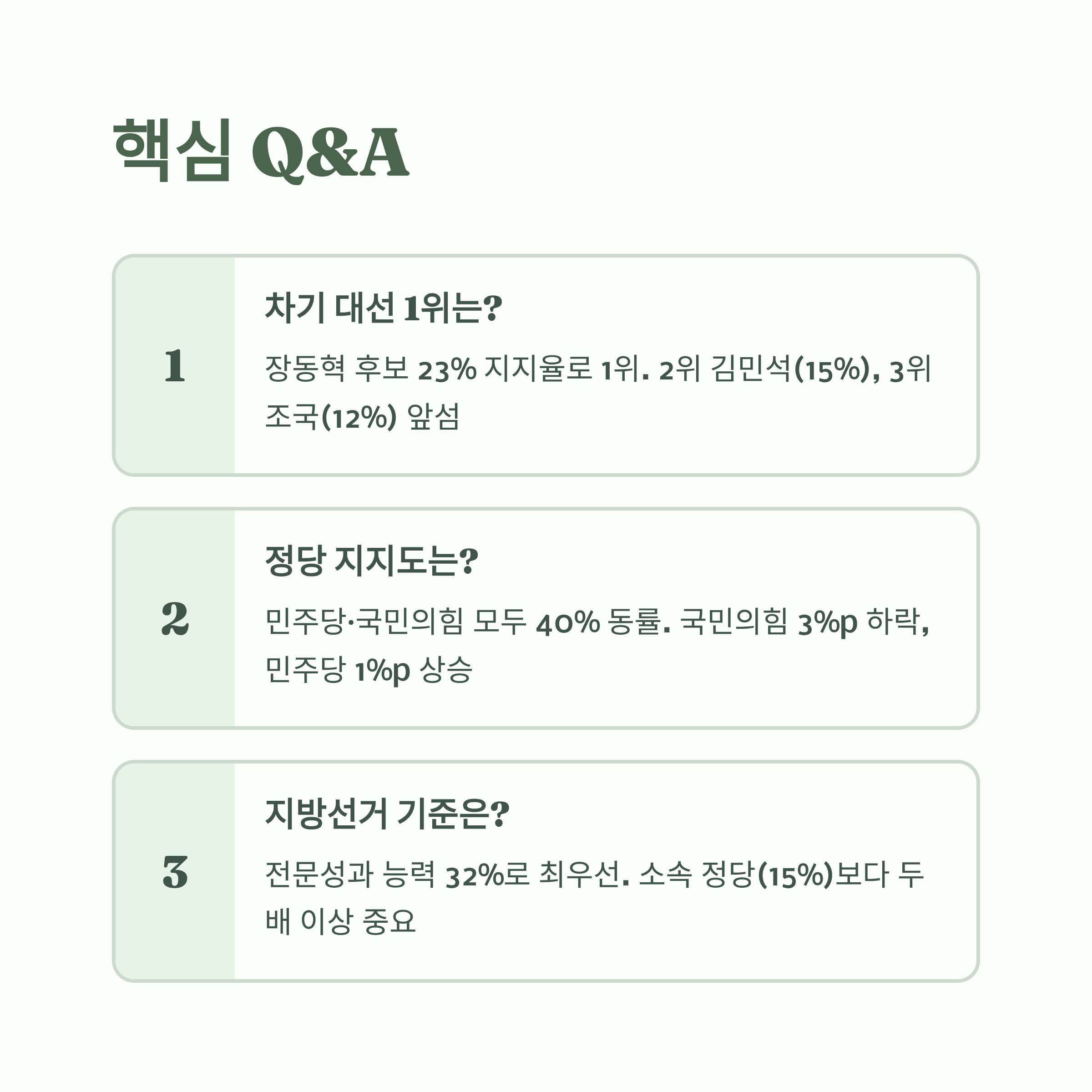 - 핵심요약: 차기 대선 지지율 및 지방선거 전망 핵심 정리
