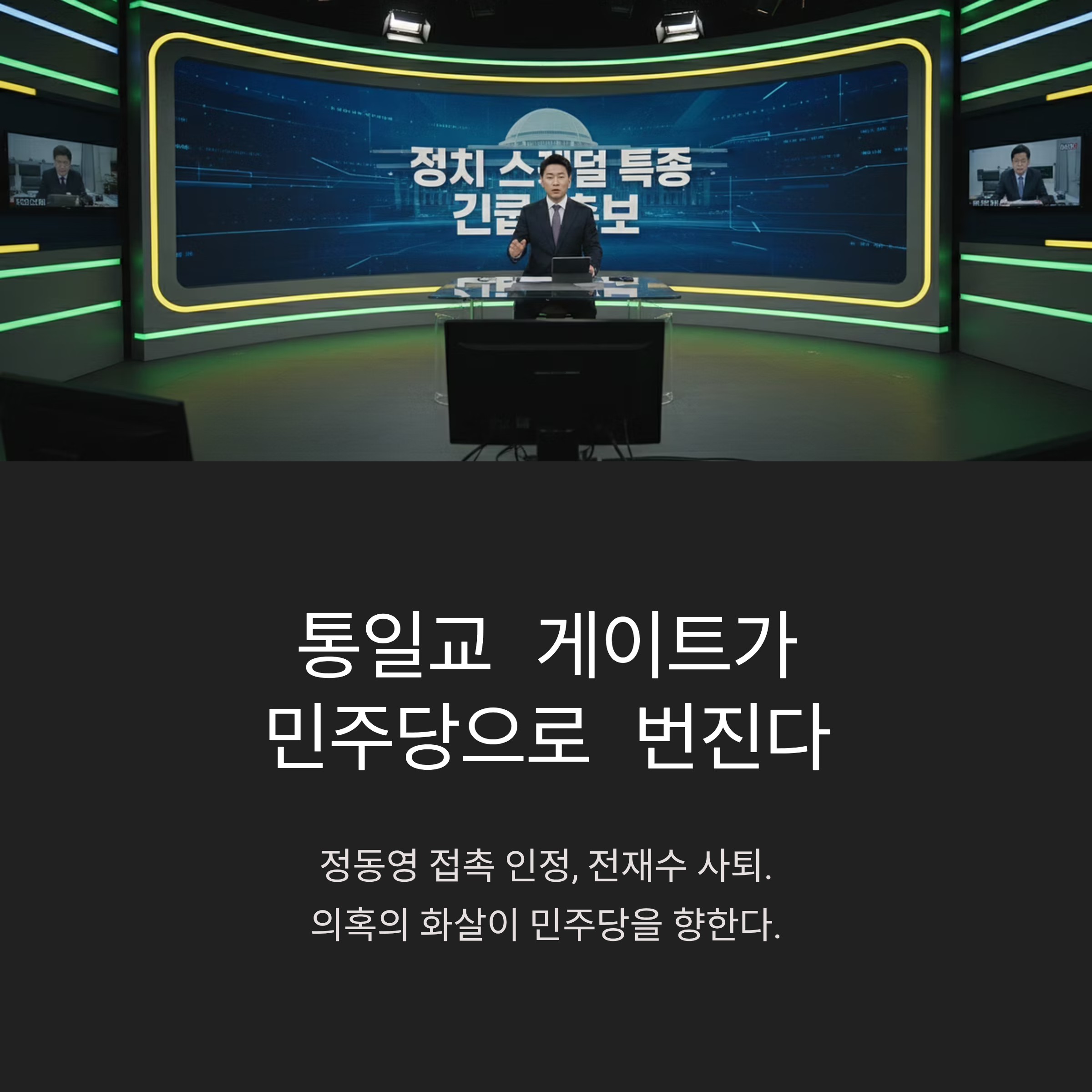 정동영 전 장관의 통일교 접촉 시인과 전재수 장관의 사퇴로 민주당-통일교 유착 의혹이 새로운 국면을 맞았습니다.