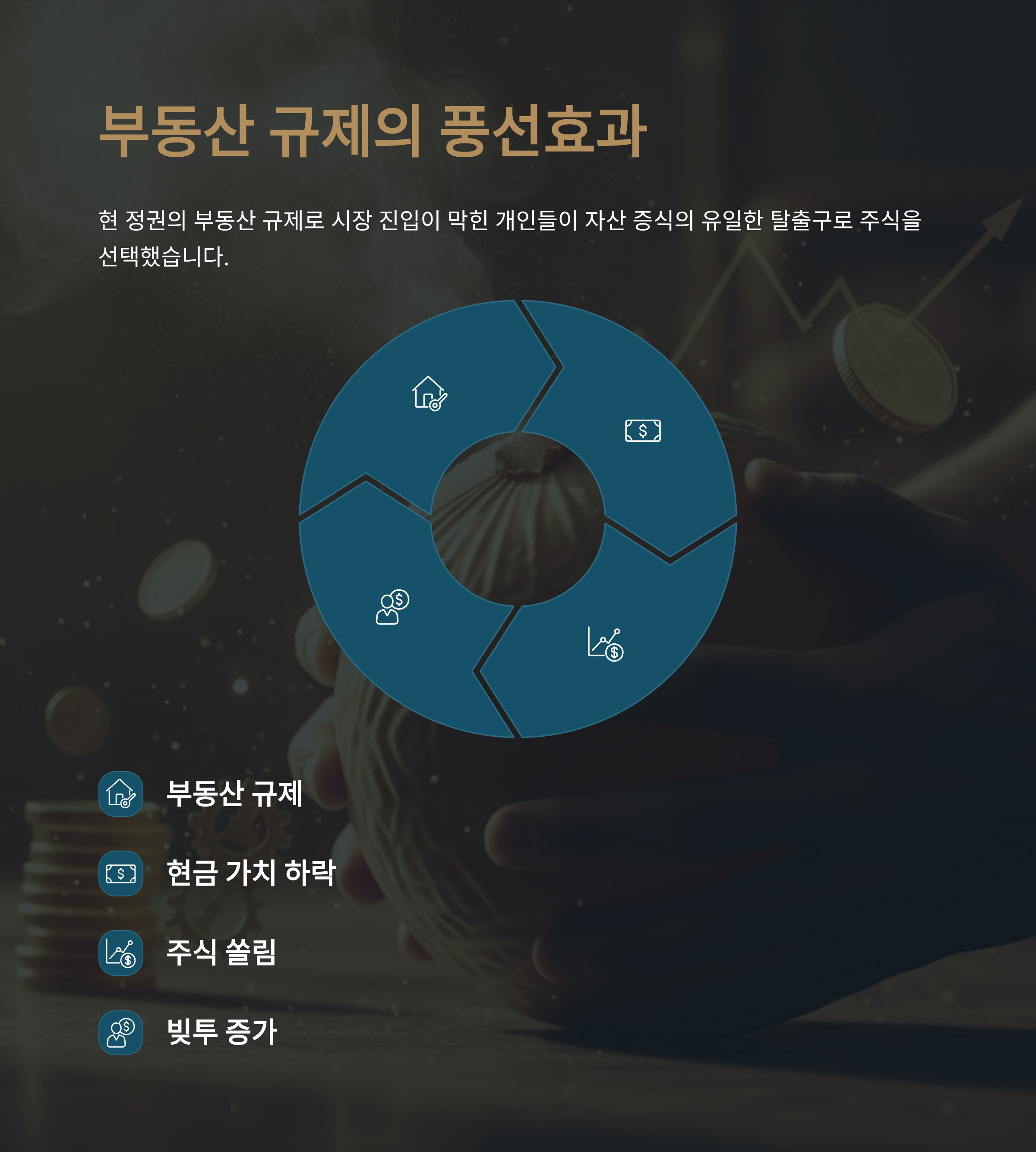 또한, 현 정권의 부동산 규제로 인해 부동산 시장 진입이 막힌 개인들이 자산 증식의 유일한 탈출구로 주식 시장을 선택했기 때문입니다.