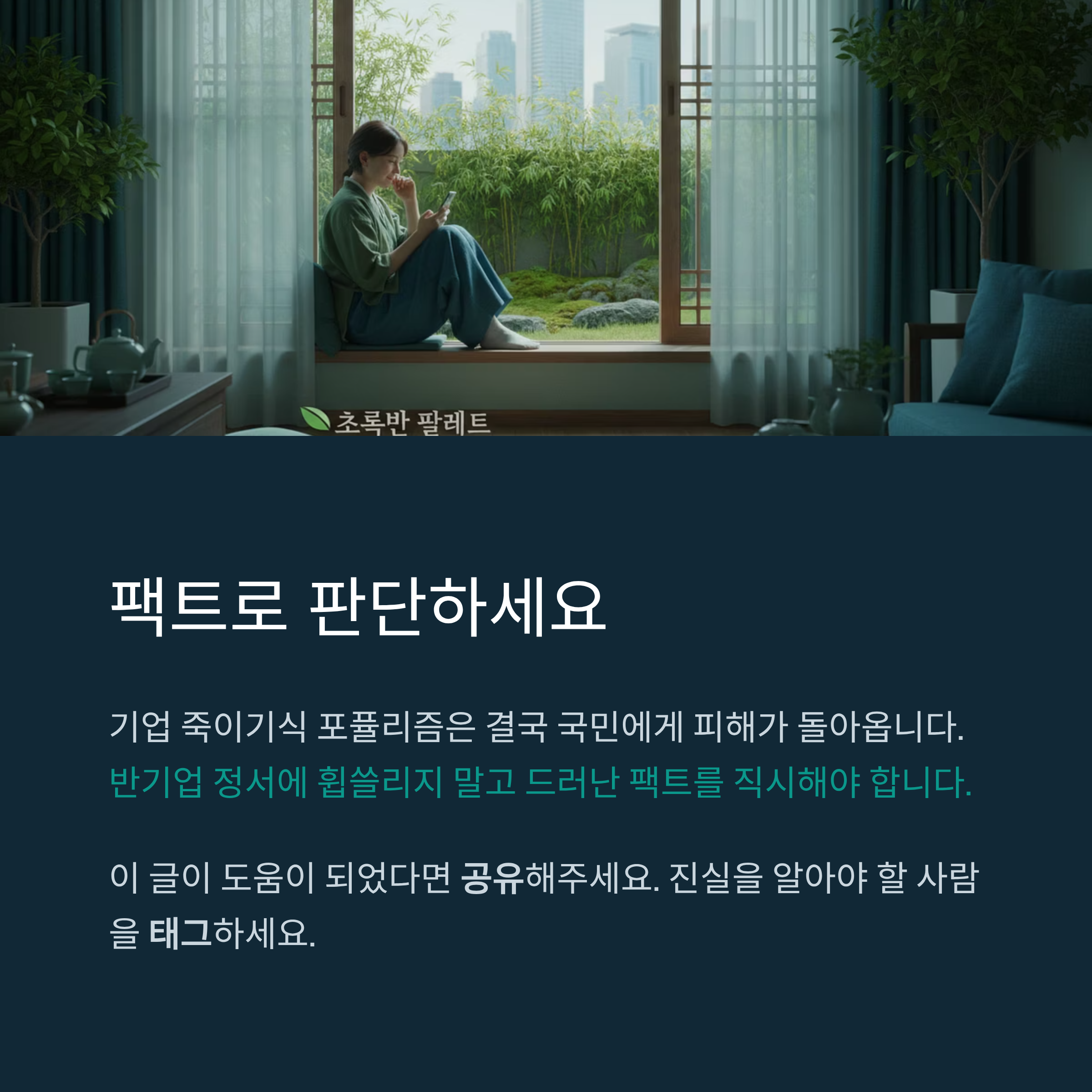 결국 조사를 통해 밝혀진 것은 쿠팡의 보안 시스템이 뚫린 것이 아니라, 내부자의 일탈을 쿠팡이 스스로, 그리고 정부와 협력하여 성공적으로 방어해냈다는 사실입니다. "회사가 망하게 해야 한다"던 대통령의 저주는 사실무근의 선동이었음이 드러났습니다. 독자 여러분은 특정 정치 세력이 주입하는 '반기업 정서'에 휩쓸리지 말고, 드러난 팩트와 데이터를 바탕으로 현상을 직시해야 합니다. 기업을 악으로 규정하고 탄압하는 포퓰리즘은 결국 일자리를 없애고 소비자의 편익을 저해하여 그 피해가 고스란히 국민에게 돌아올 것임을 명심해야 합니다.