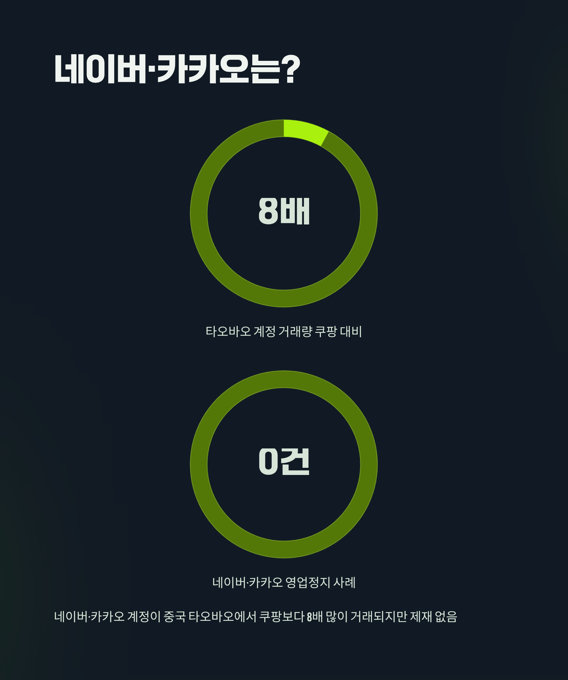 | 타 플랫폼 유출 비교 | 네이버/카카오 계정, 쿠팡보다 8배 이상 거래 |