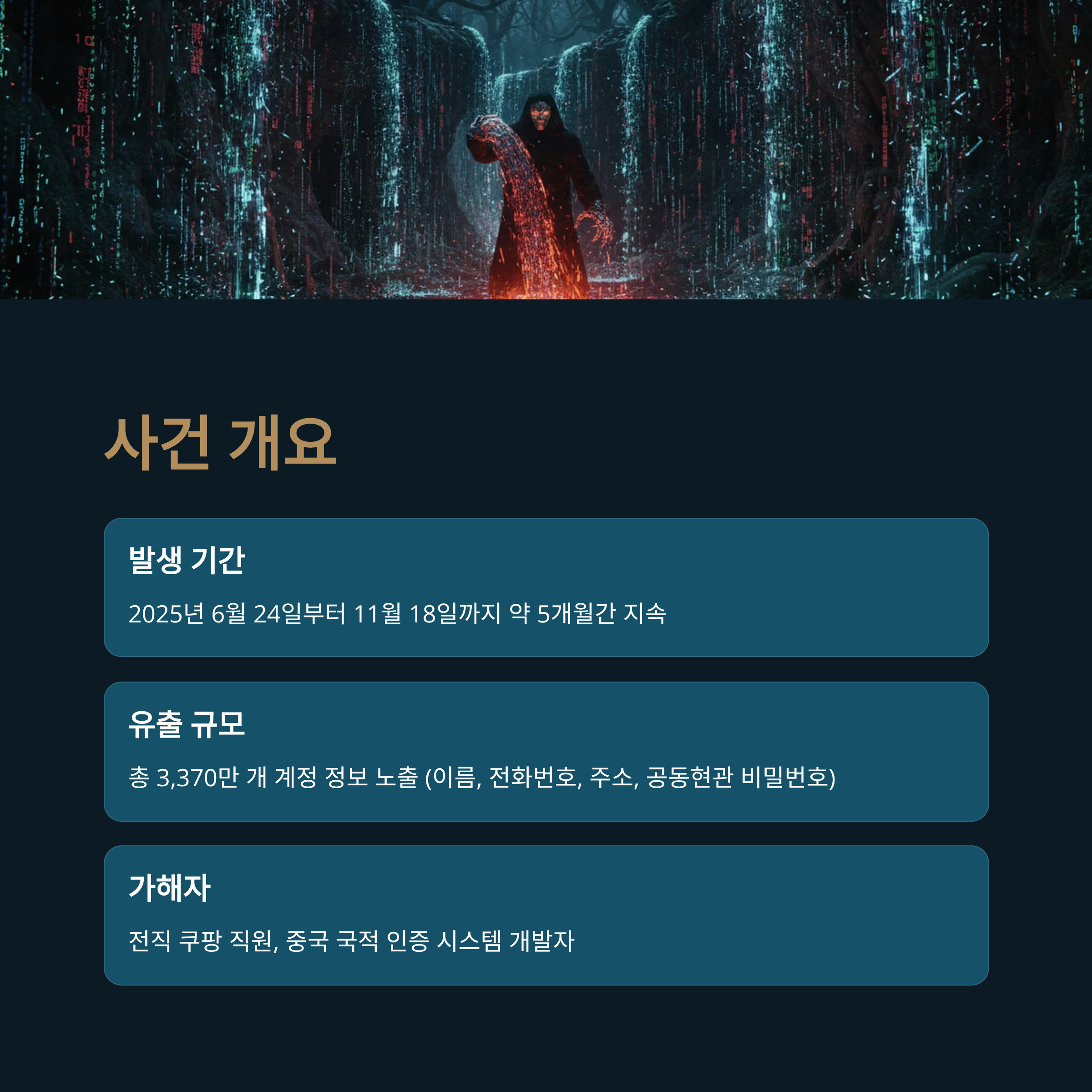 | 가해자 | 전직 쿠팡 직원 (중국 국적, 인증 시스템 개발자) |