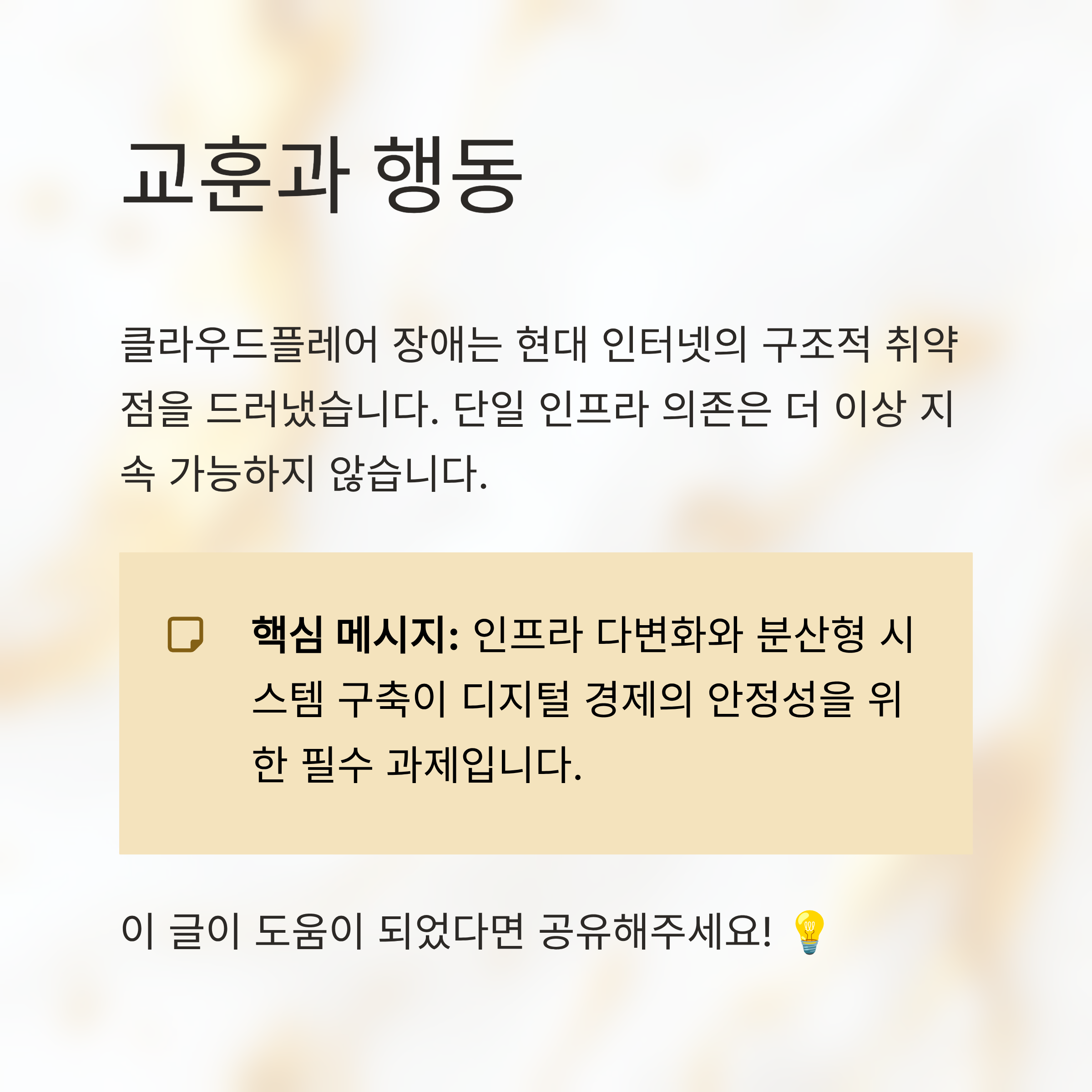 이 사건은 클라우드플레어 같은 단일 인터넷 인프라 제공업체에 대한 과도한 의존의 위험을 경고하고 있습니다.