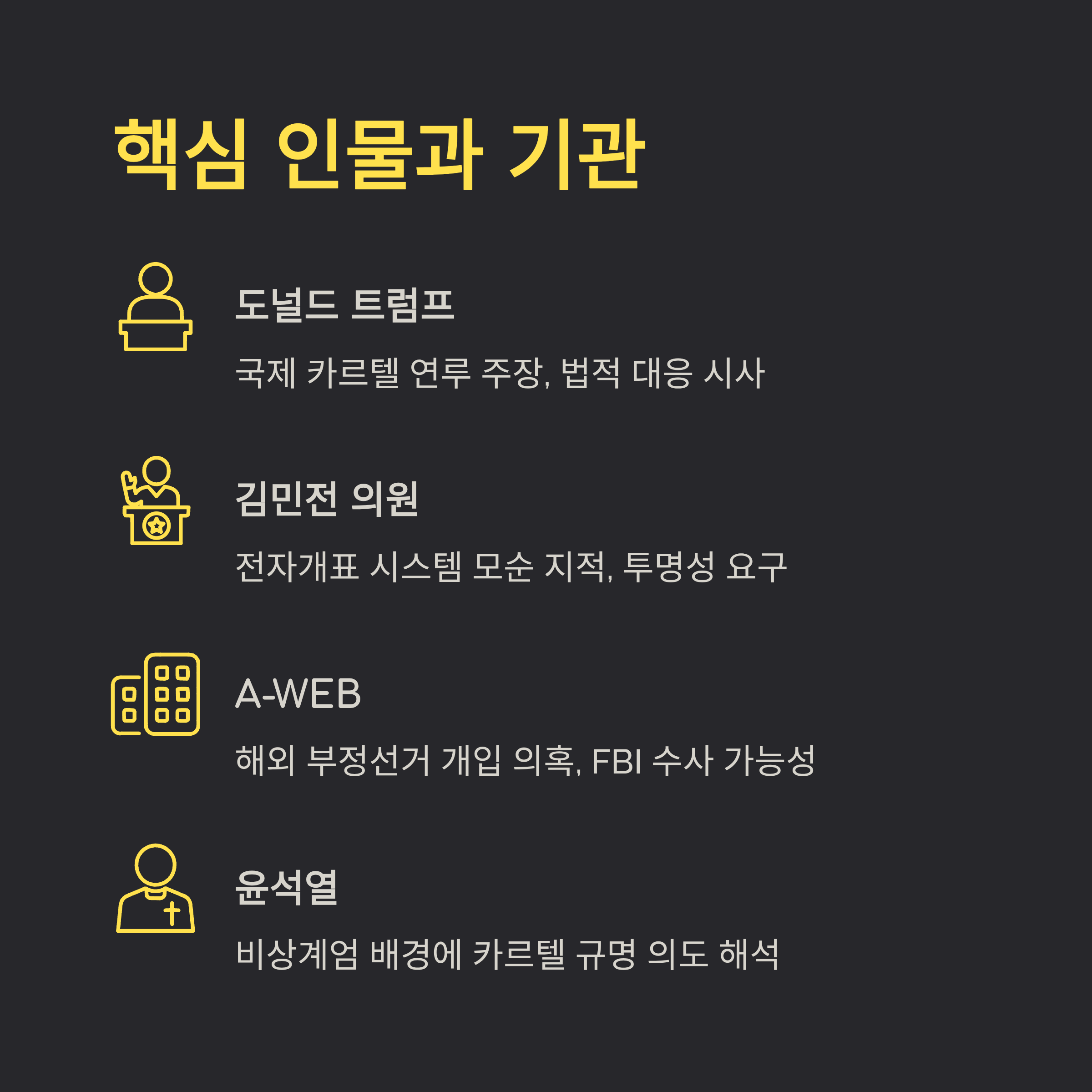 부정선거, 트럼프, 김민전, A-WEB, 미루시스템즈, 전자개표기, 윤석열, 비상계엄, 선거조작, 국제카르텔