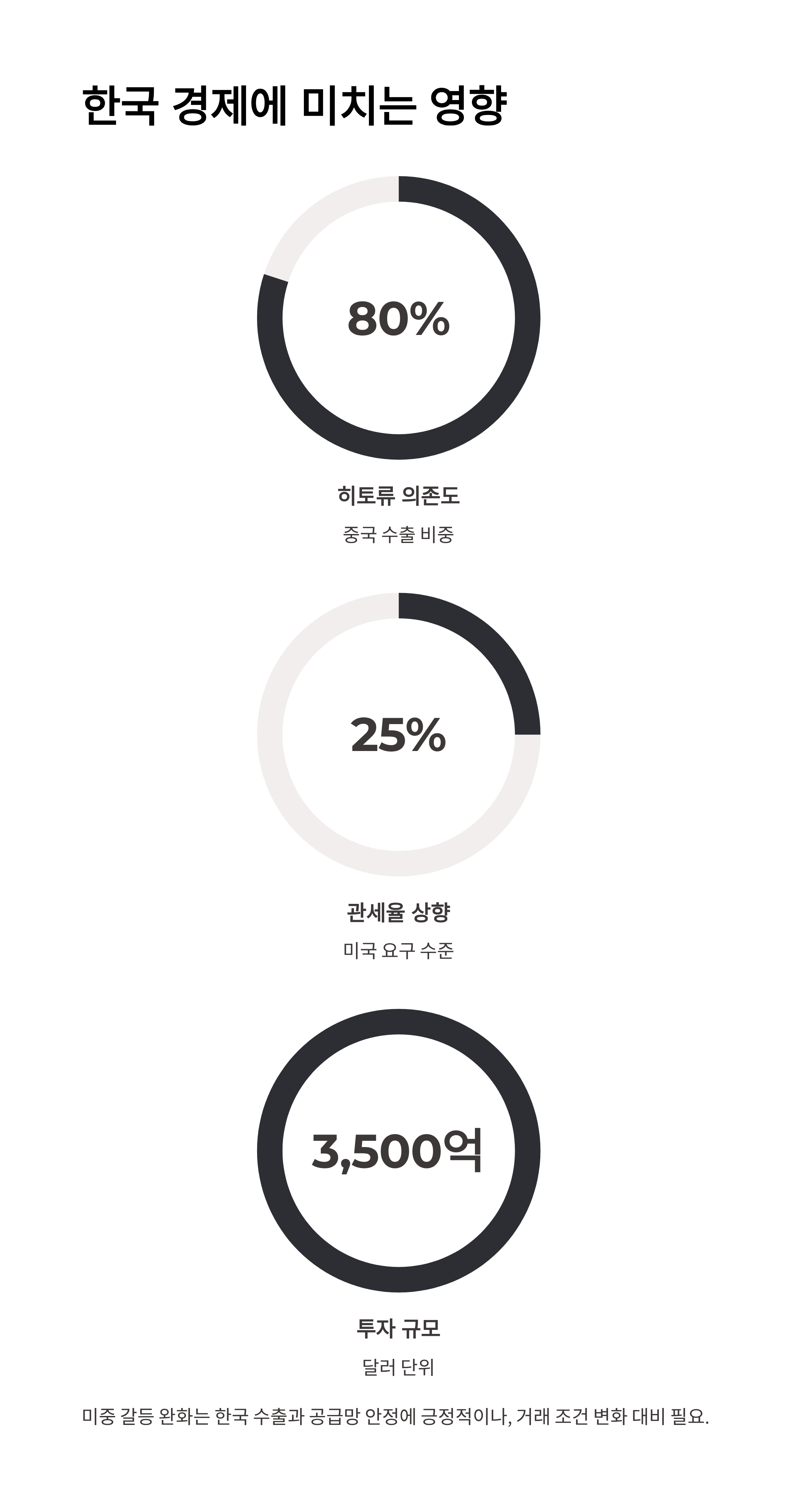 | A. 양국 간 분쟁 완화는 한국 수출과 글로벌 공급망 안정에 긍정적 영향을 미칠 수 있으나, 거래 조건 변화는 대비가 필요합니다. |