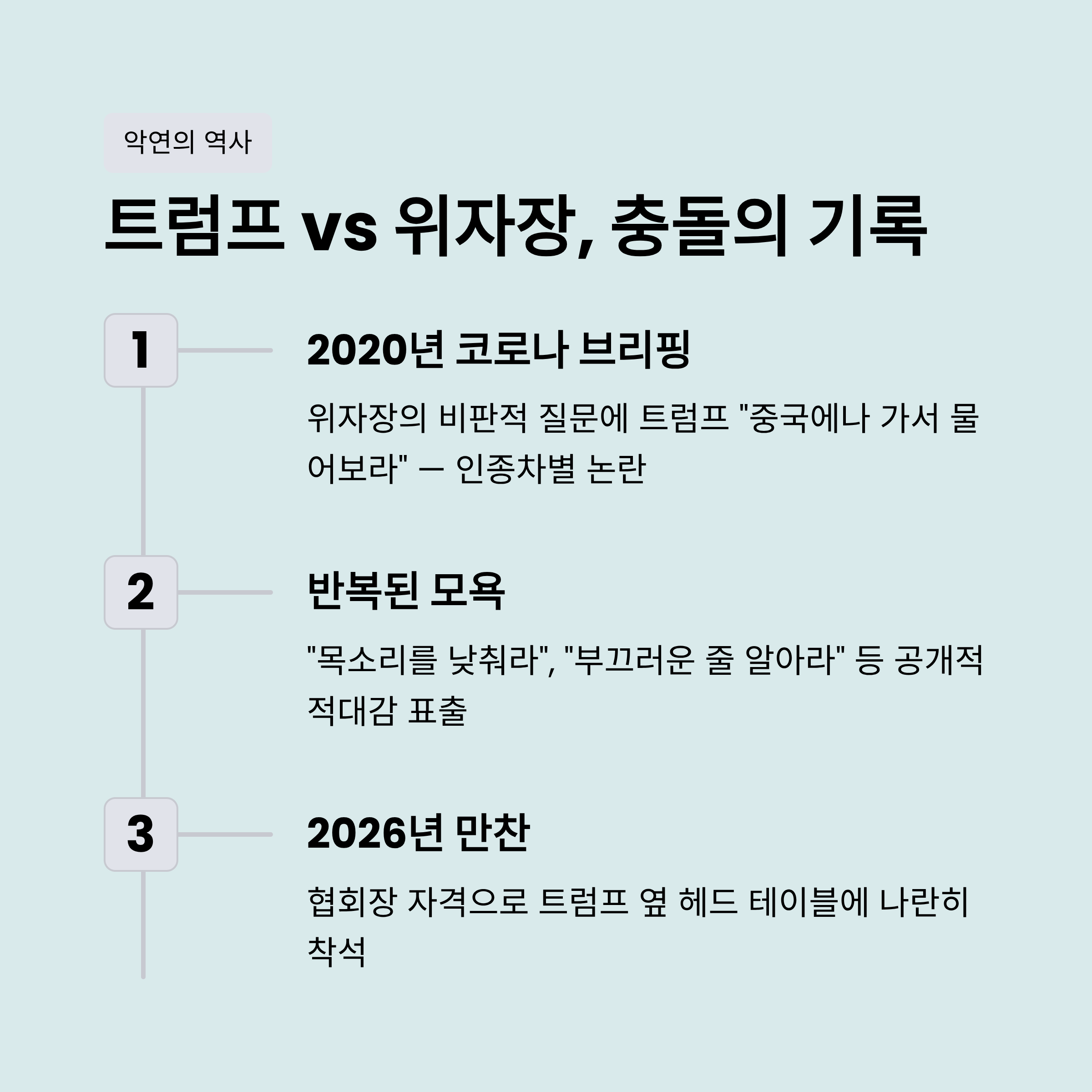 - 1. 트럼프와 위자장, 악연으로 얽힌 상징적 만남