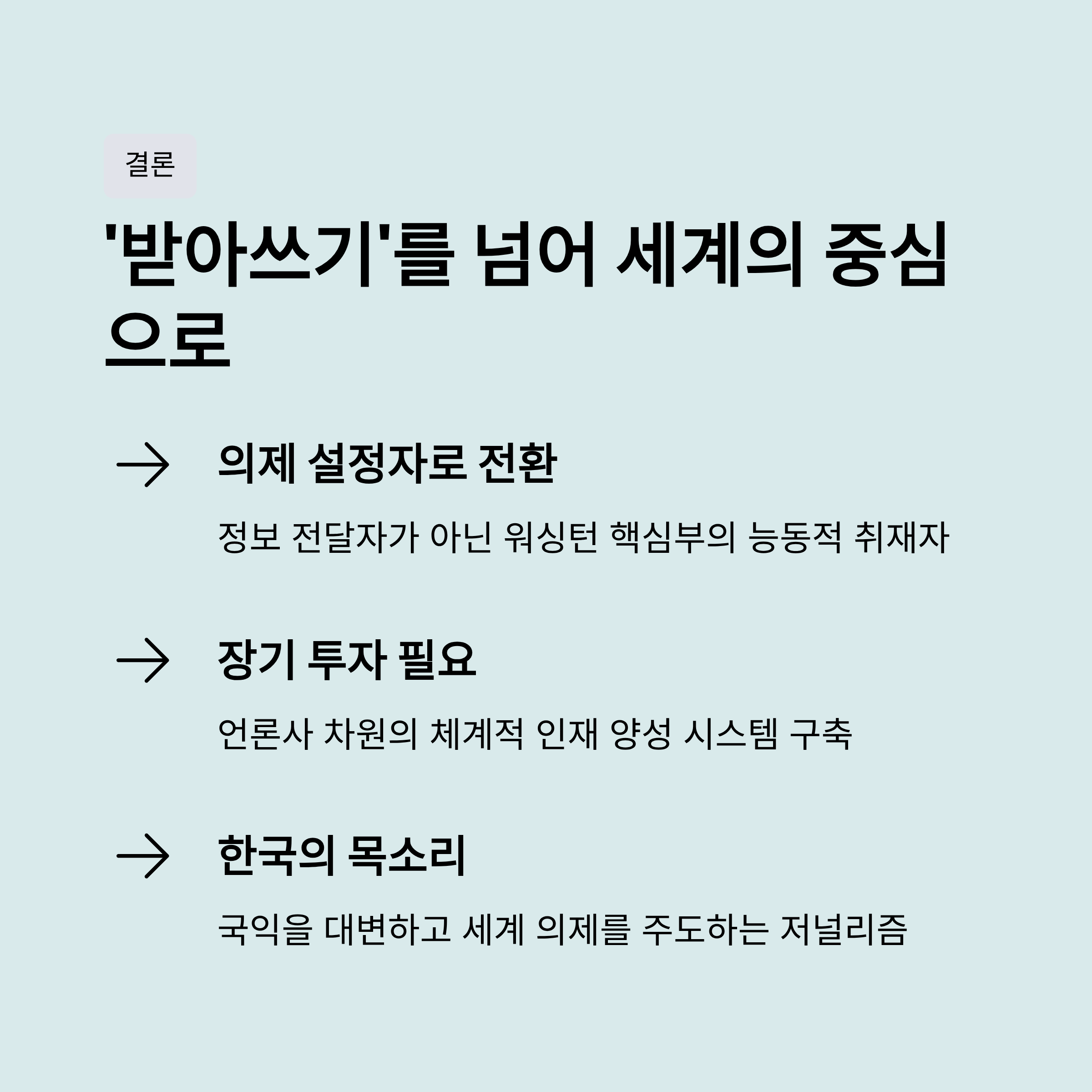 결론: ‘받아쓰기’를 넘어 세계의 중심으로 나아가야 할 한국 언론