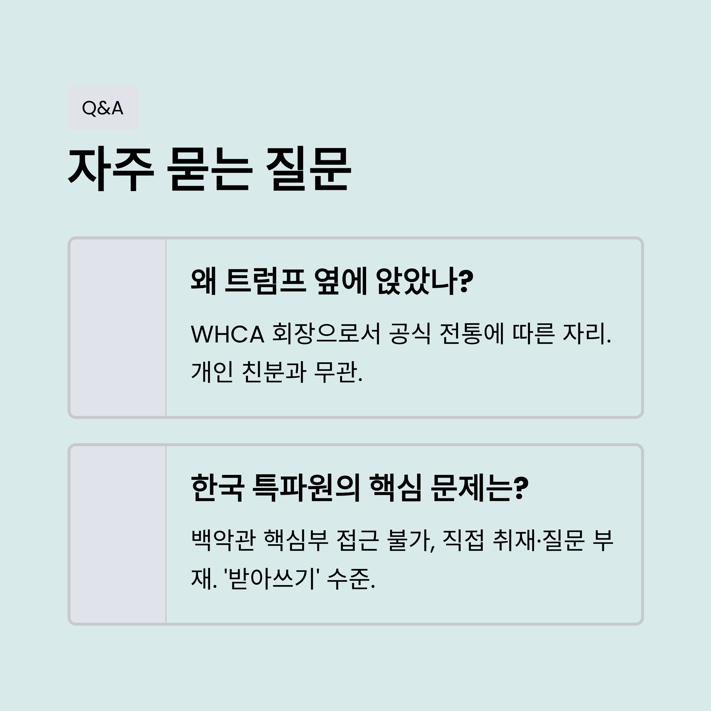 | Q. 위자장 기자는 왜 트럼프 대통령 옆자리에 앉게 되었나요? |