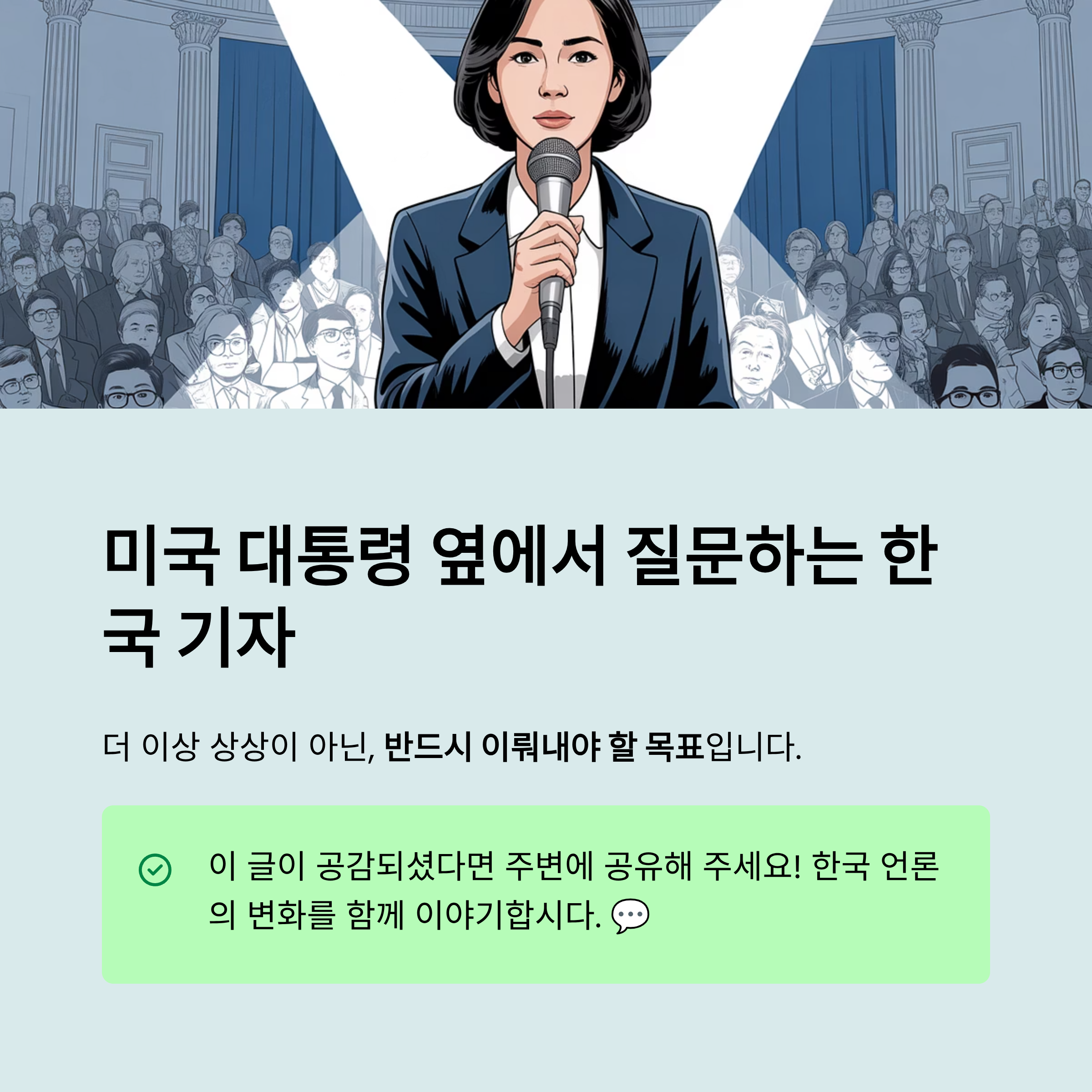 트럼프 전 대통령 옆에 앉은 중국계 미국인 기자 위자장의 모습은 단순한 화젯거리를 넘어 한국 언론에 뼈아픈 질문을 던집니다. 왜 세계 권력의 심장부에서 한국 기자의 모습은 보이지 않는가? 워싱턴의 정책 결정 하나하나가 한반도의 운명을 좌우하는 현실 속에서, 한국 언론은 여전히 백악관 담장 밖에서 미국 언론의 보도를 번역하는 수동적인 역할에 머물러 있습니다. 이는 국가의 위상에 전혀 걸맞지 않는 낙후된 저널리즘의 현주소입니다. 문제의 핵심은 전략과 집요함의 부재입니다. 위자장의 성공이 보여주듯, 이제는 언어 능력을 넘어 미국 사회의 작동 방식을 이해하고, 그 안으로 깊숙이 파고들어 네트워크를 구축하고, 결정적인 순간에 핵심을 꿰뚫는 질문을 던질 수 있는 능력이 필요합니다. 이를 위해서는 언론사 차원의 장기적인 투자와 체계적인 인재 양성 시스템이 절실합니다. 더 이상 미국 언론이라는 필터를 통해 세상을 봐서는 안 됩니다. 이제는 우리만의 시각으로 현장을 분석하고, 한국의 국익을 대변하며, 때로는 세계적인 의제를 주도하는 능동적인 보도 태도를 갖춰야 합니다. 미국 대통령의 옆자리에서 세계 권력의 움직임을 취재하고 질문하는 한국 기자의 모습은 더 이상 상상이 아닌, 반드시 이뤄내야 할 목표입니다.