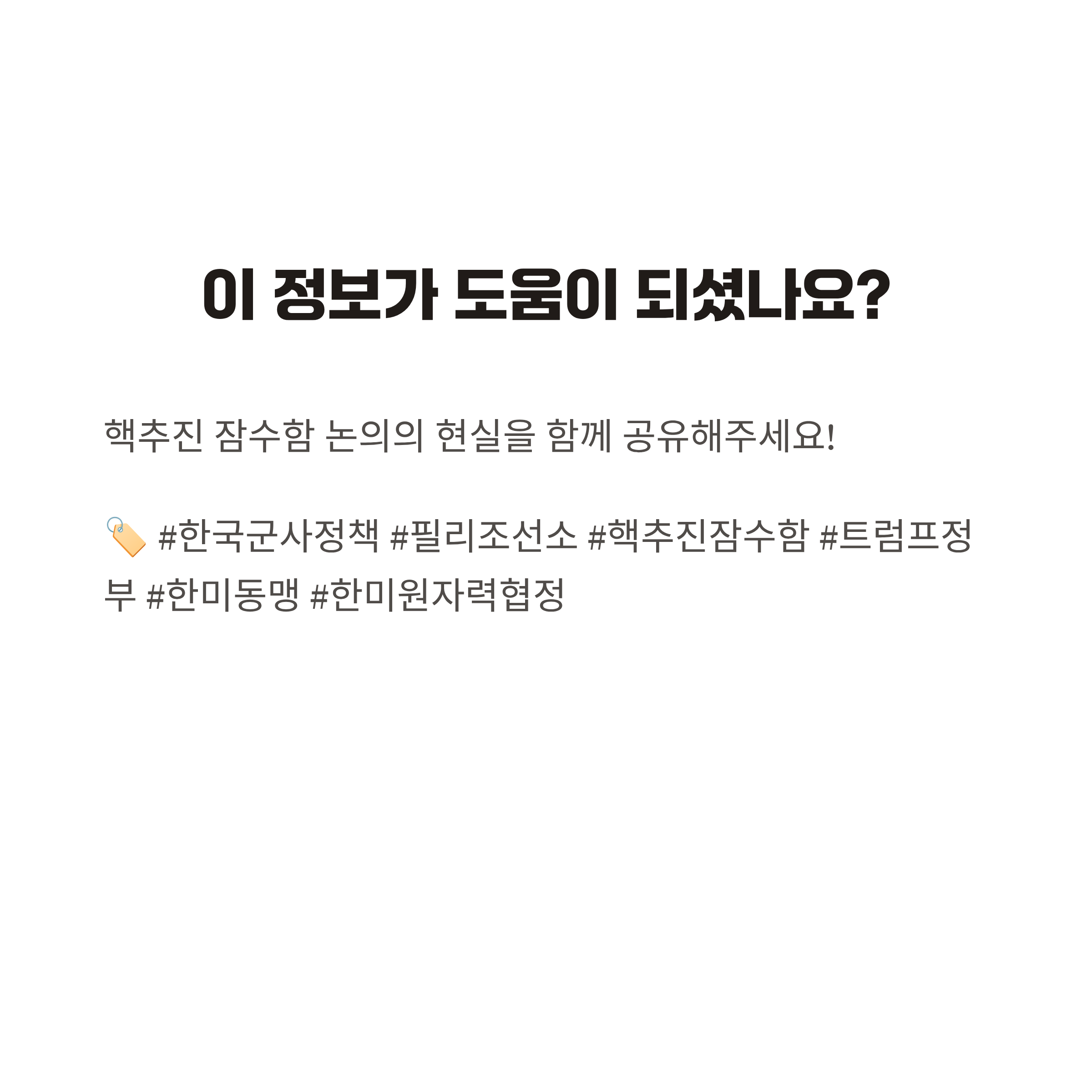 관련 태그: 한국군사정책, 필리조선소, 핵추진잠수함, 트럼프정부, 한미동맹, 한미원자력협정