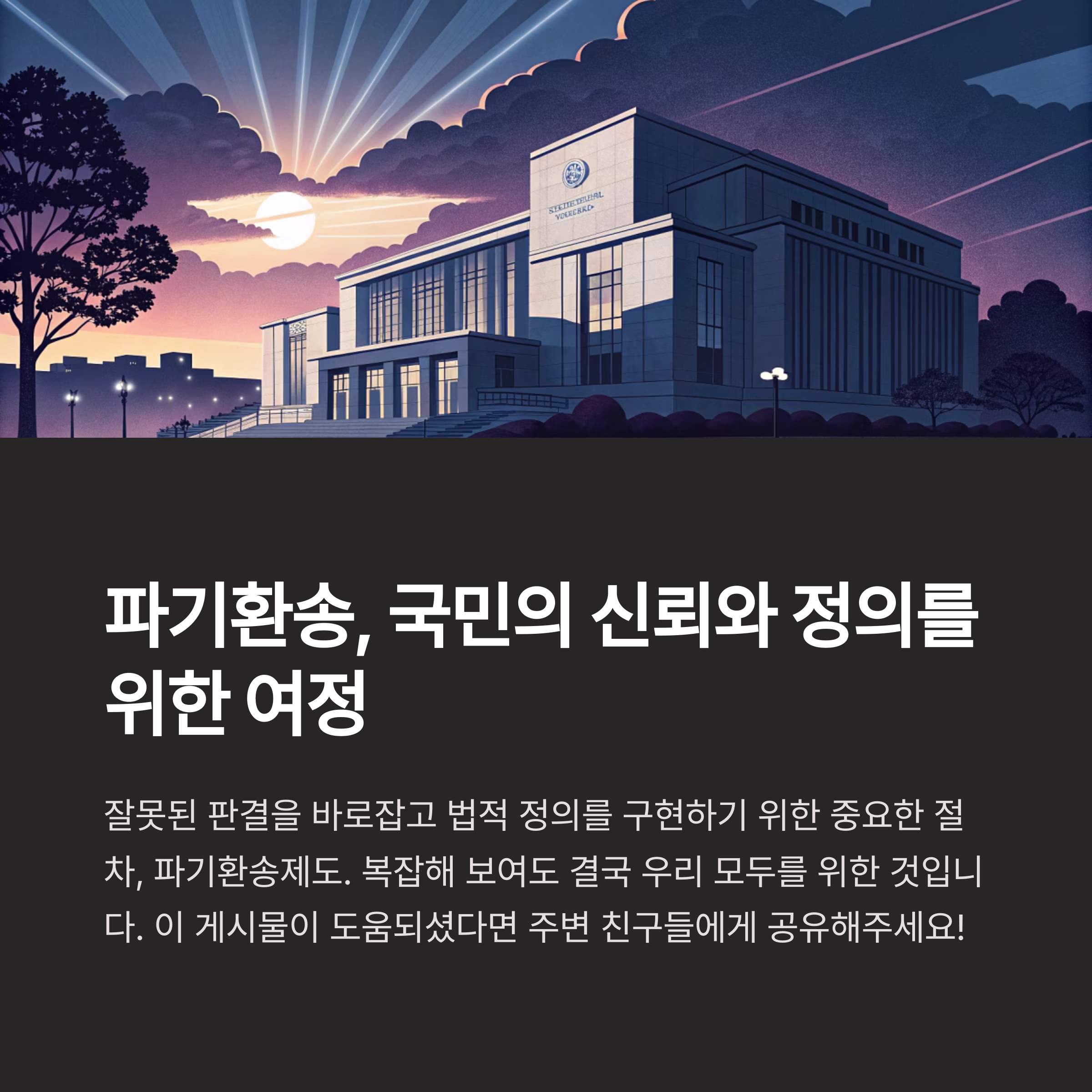 앞으로 뉴스를 통해 '파기환송'이라는 단어를 들었을 때, 그 절차와 의미를 이해하고 관심 있게 바라볼 수 있는 시민이 되었으면 합니다.