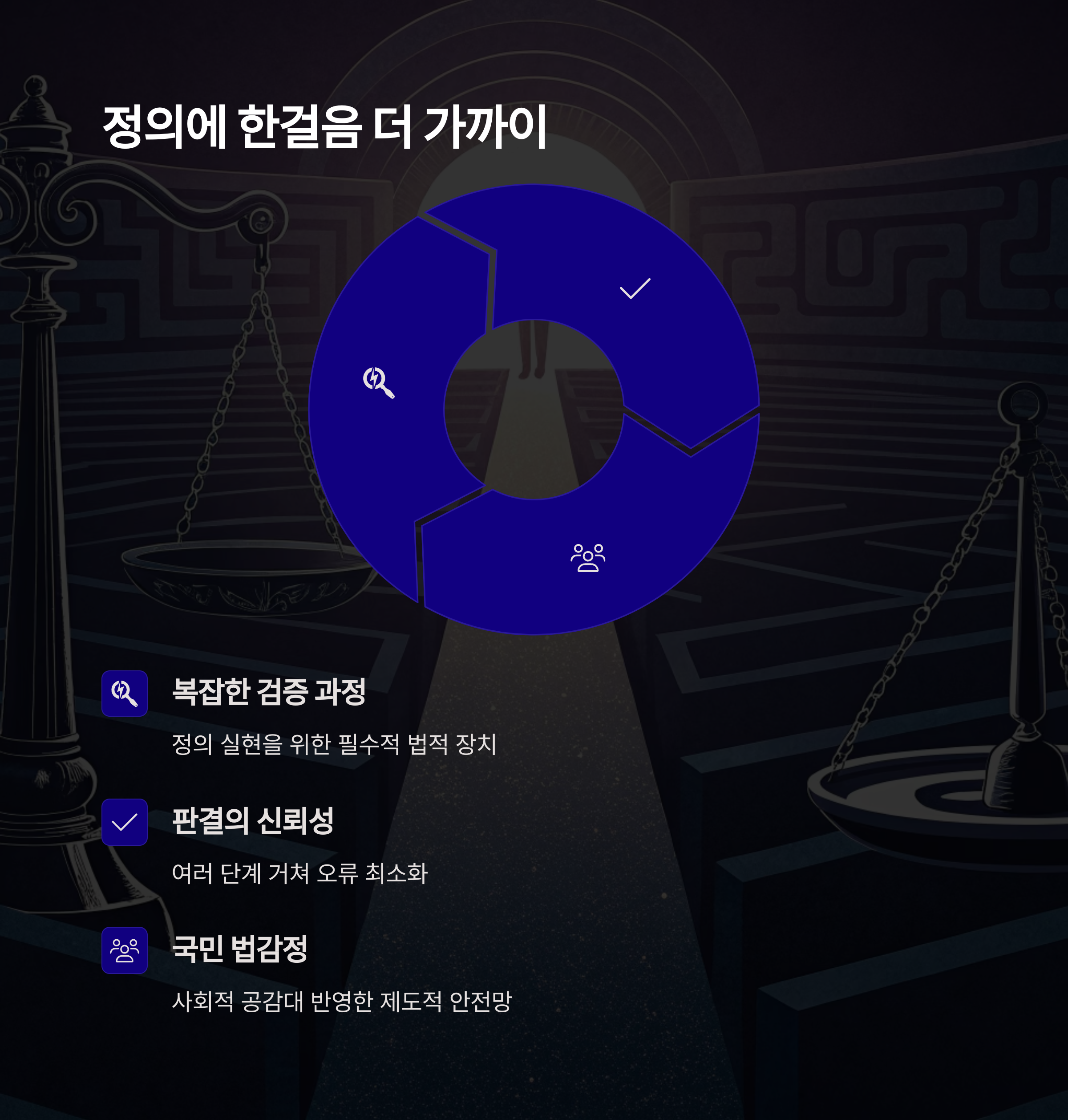 - 결국 '정의에 가까운 판결'을 위해 여러 단계를 거치는 것