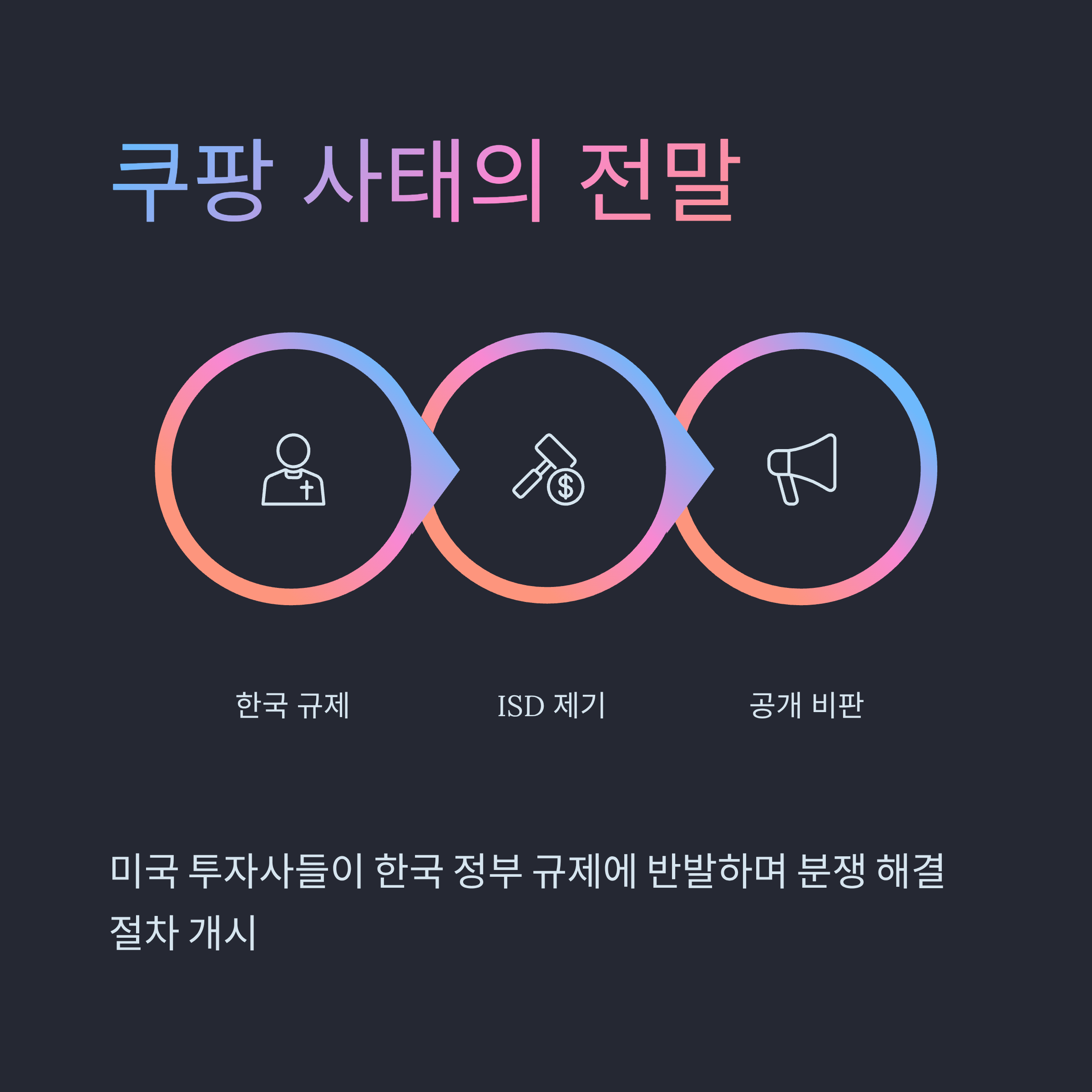 이번 논란의 중심에는 쿠팡의 주요 투자사들이 한국 정부의 규제에 반발하며 투자자-국가 분쟁 해결(ISD) 절차를 개시한 이른바 '쿠팡 사태'가 자리 잡고 있습니다.