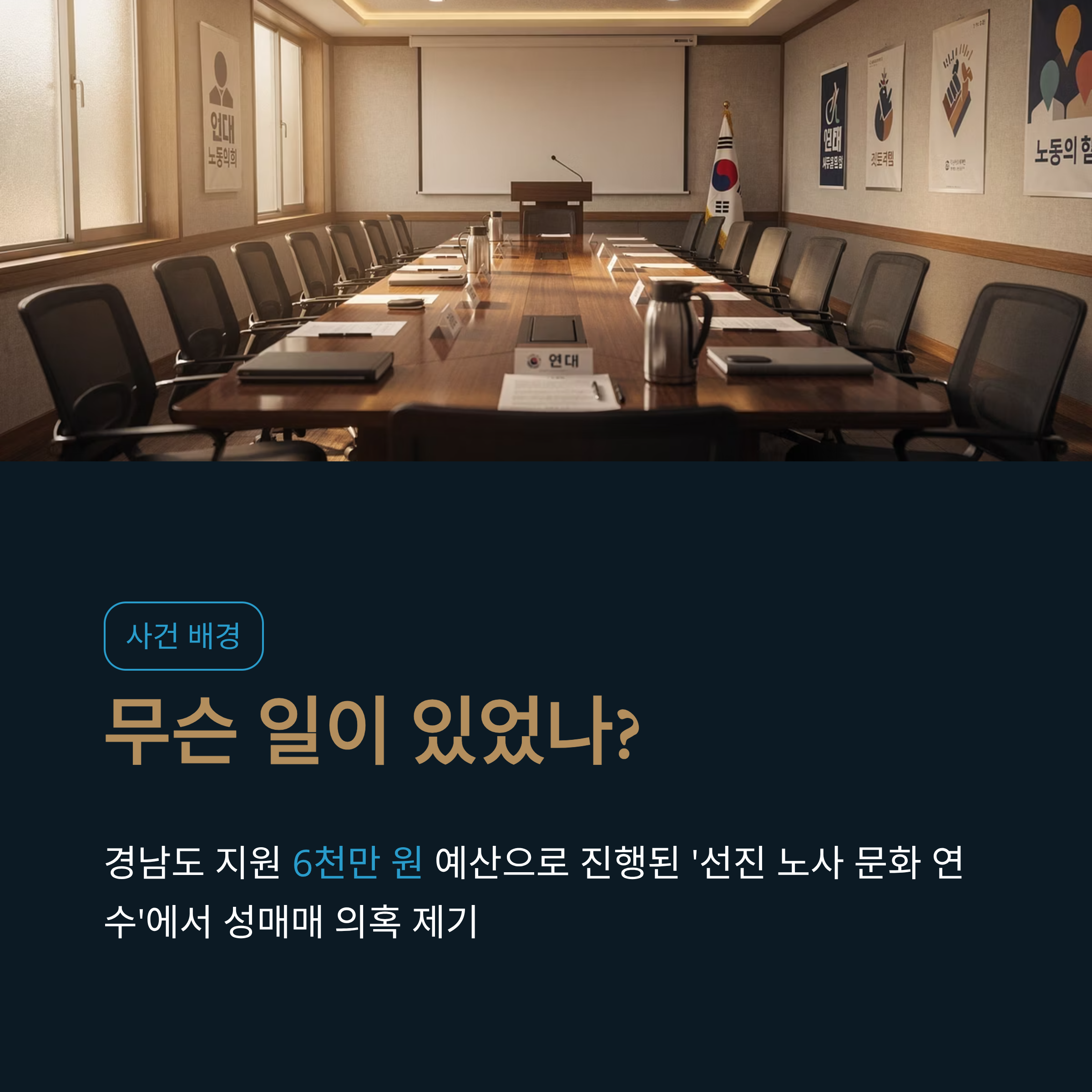사건 배경: 한국노총 경남지역 본부의 베트남 연수에서 성매매 의혹이 불거졌습니다. 여행 가이드의 폭로에 따르면, 참가자들은 공장 방문 사진 촬영만 간단히 끝내고 성매매에 몰두했다고 합니다.