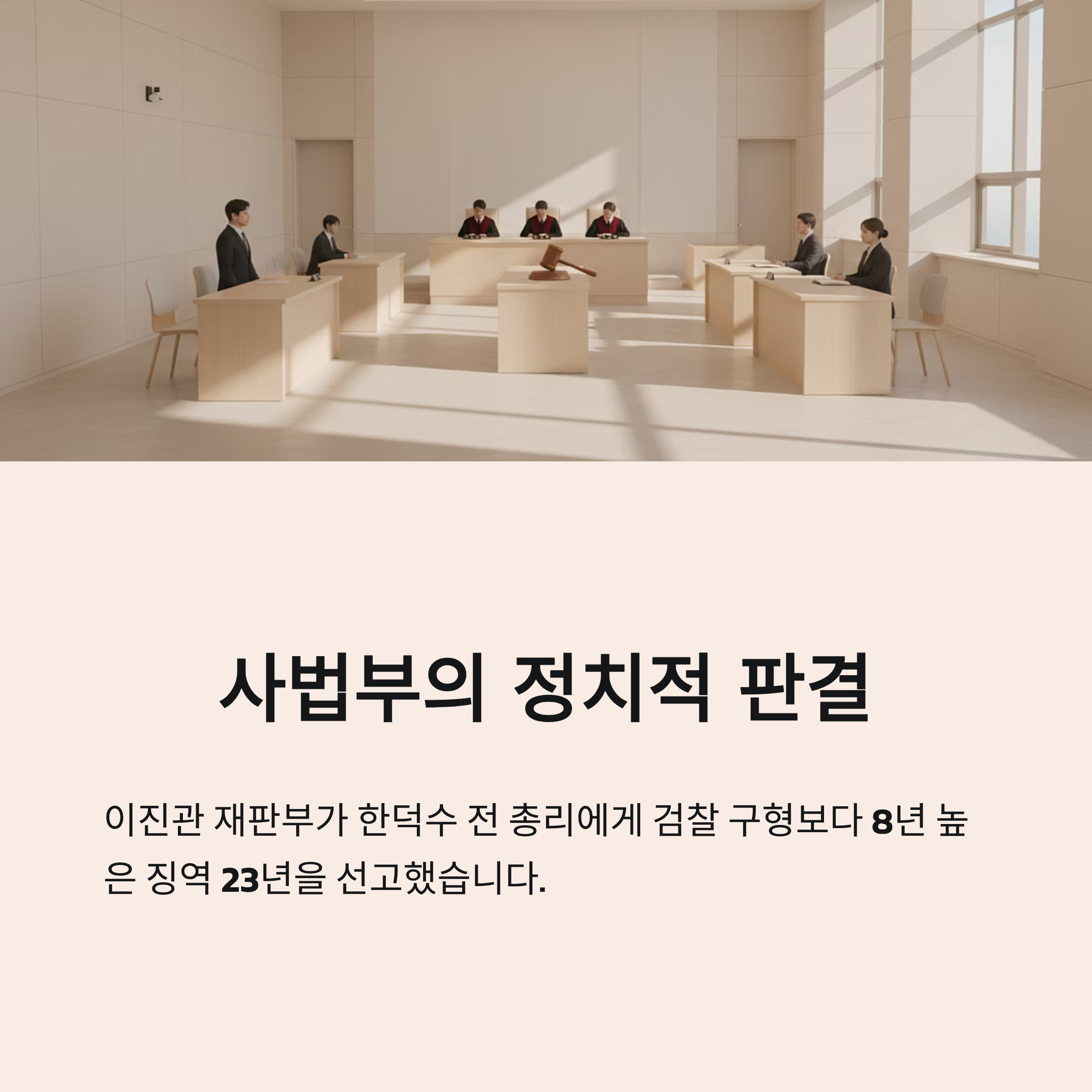 한덕수 전 총리에 대한 이진관 재판부의 23년 선고는 명백한 '정치적 사법 살인'으로 규정됩니다.