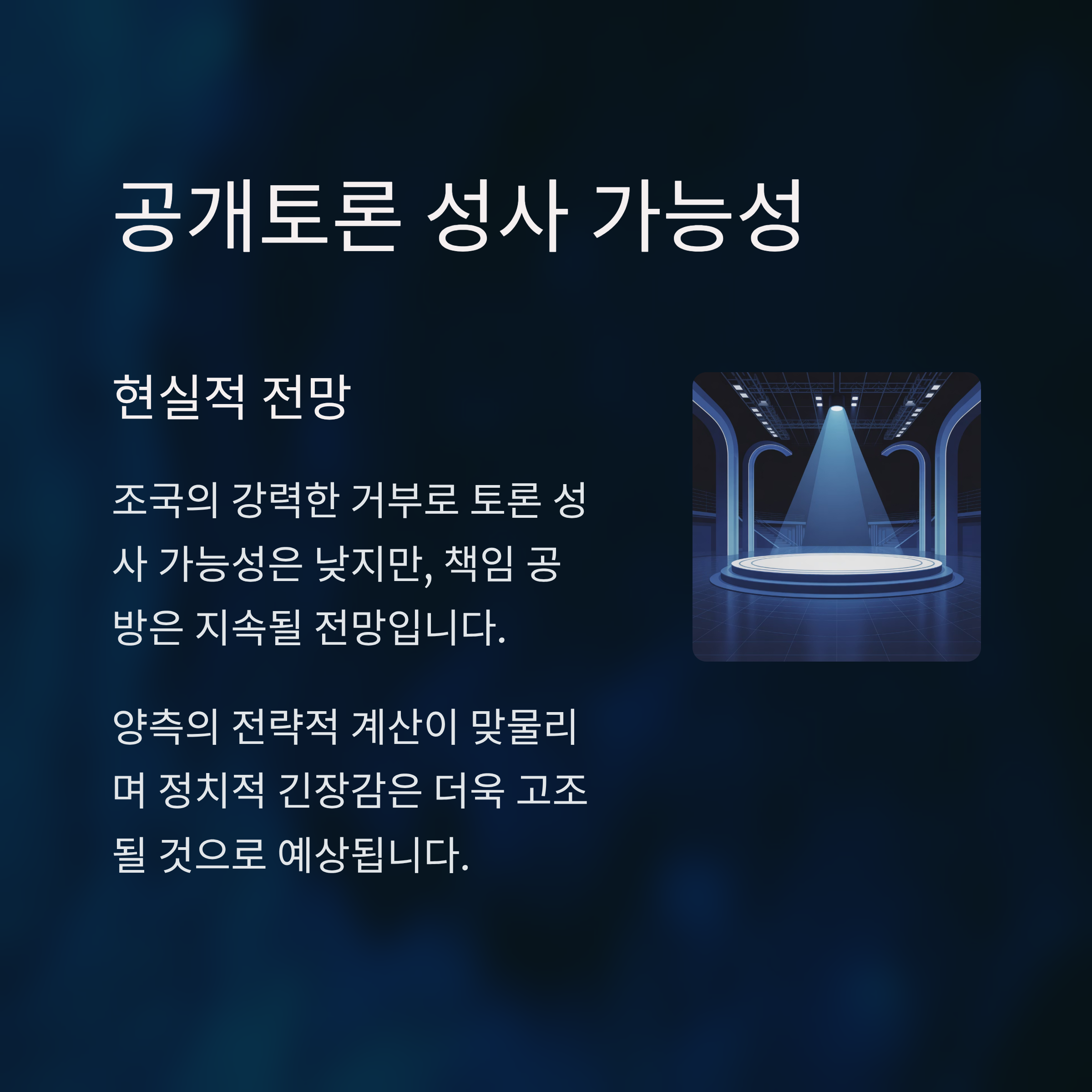 향후 공개토론 성사 여부와 공개적 발언은 큰 정치적 여파를 미칠 전망입니다.