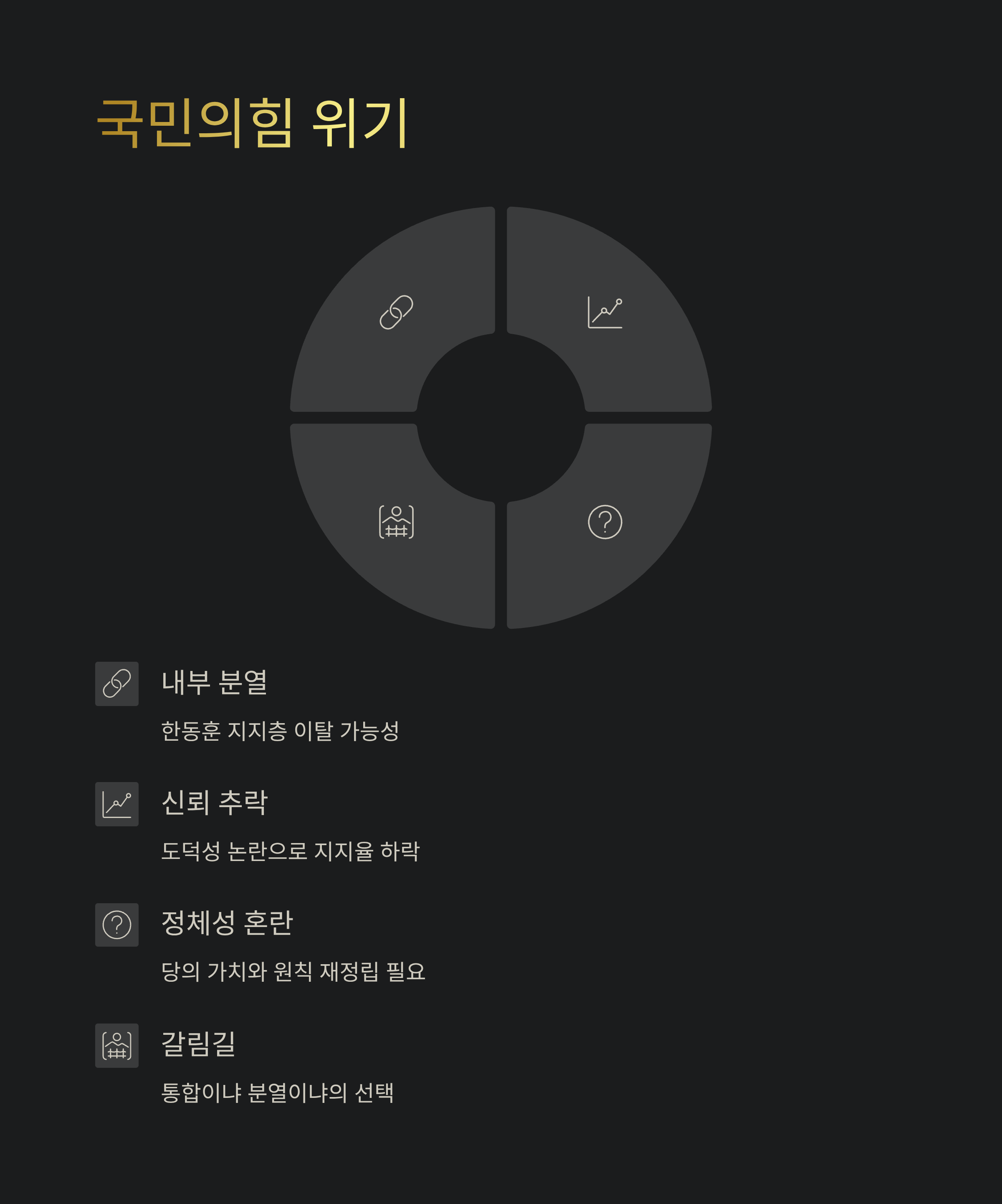 결국 이번 사건은 국민의힘이 내부 갈등을 봉합하고 통합으로 나아갈지, 혹은 극심한 분열의 소용돌이에 빠질지를 결정하는 중대한 갈림길이 될 전망입니다.
