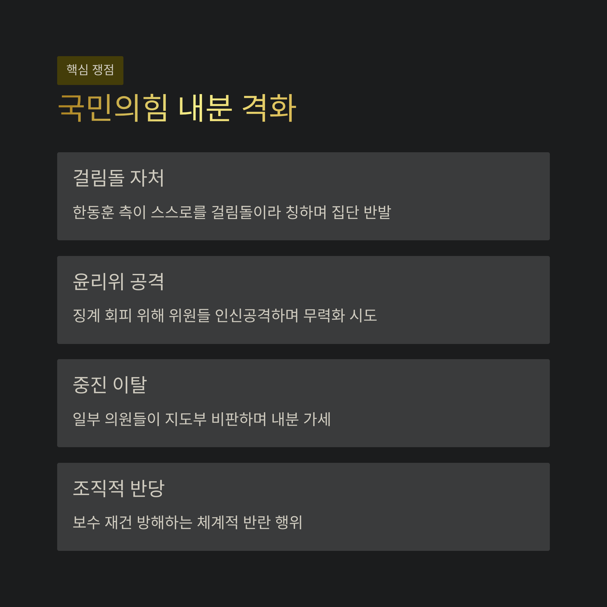 - 핵심 요약: 국민의힘 내분 격화의 4가지 쟁점