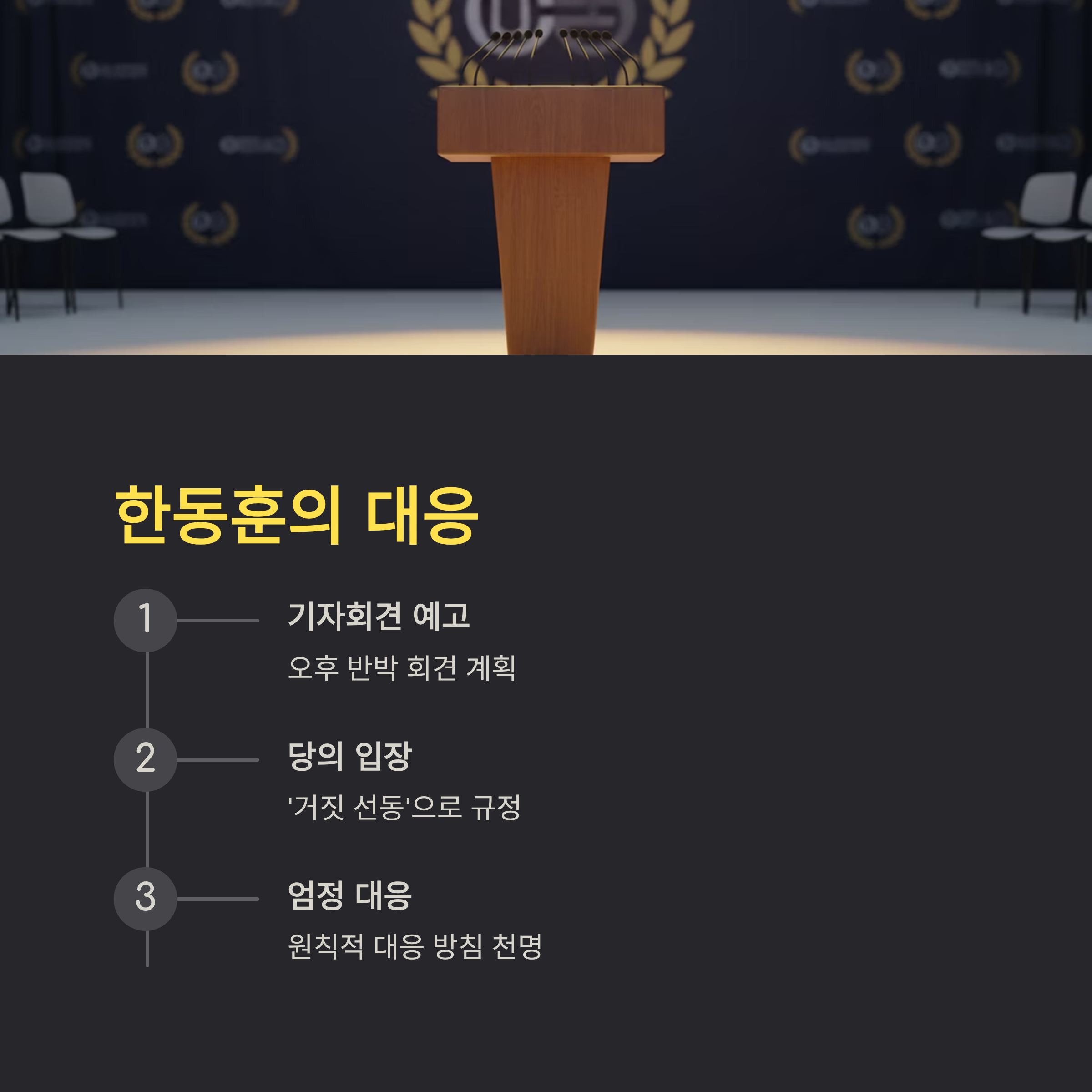 정치적 사형 선고를 받은 한동훈은 기자회견을 예고했으며, 당은 이를 '거짓 선동'으로 규정하고 엄정 대응을 천명했습니다.