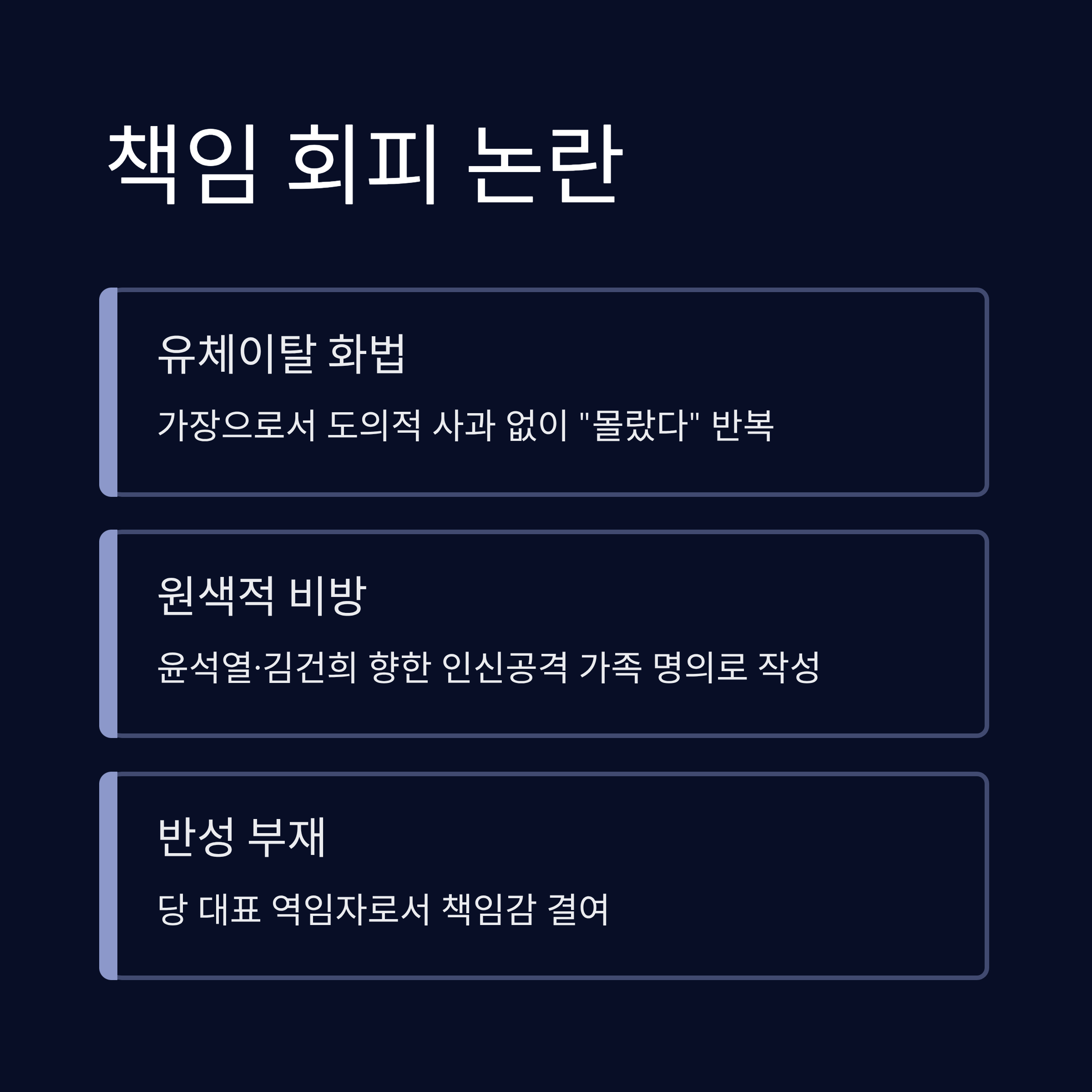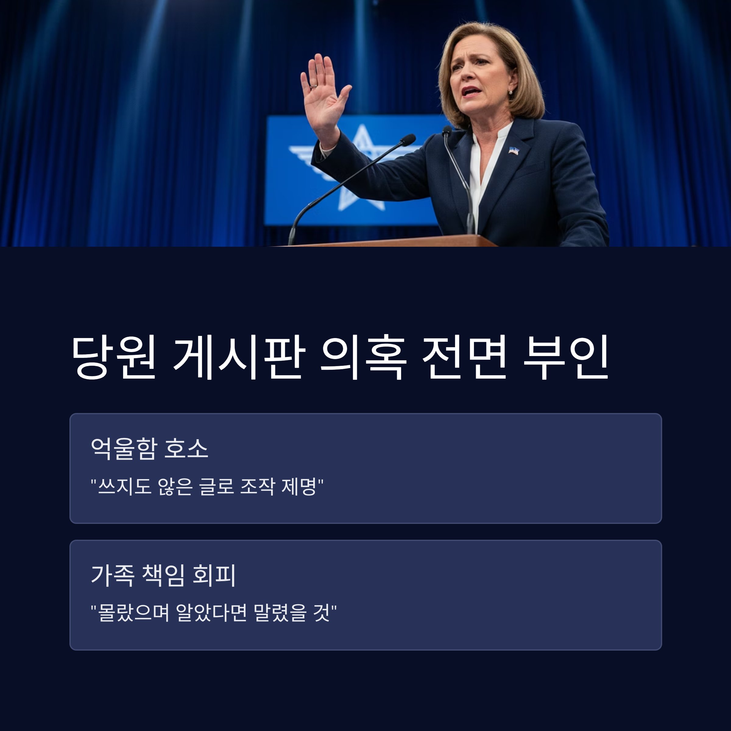 1. 당원 게시판 의혹과 '가족 탓' 책임 회피