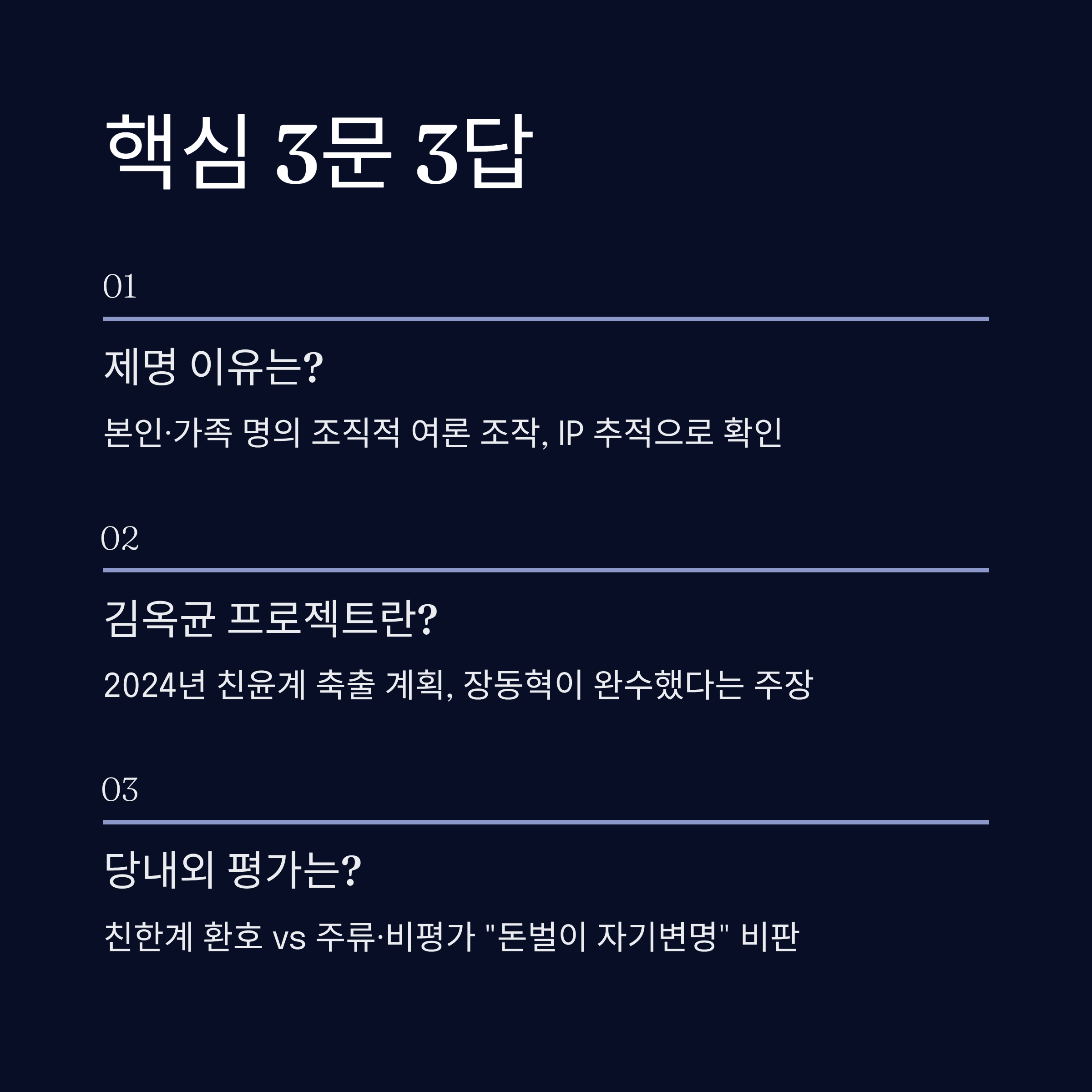 - 2. 핵심요약: 당원 게시판 의혹 부인과 친한계의 세력 과시