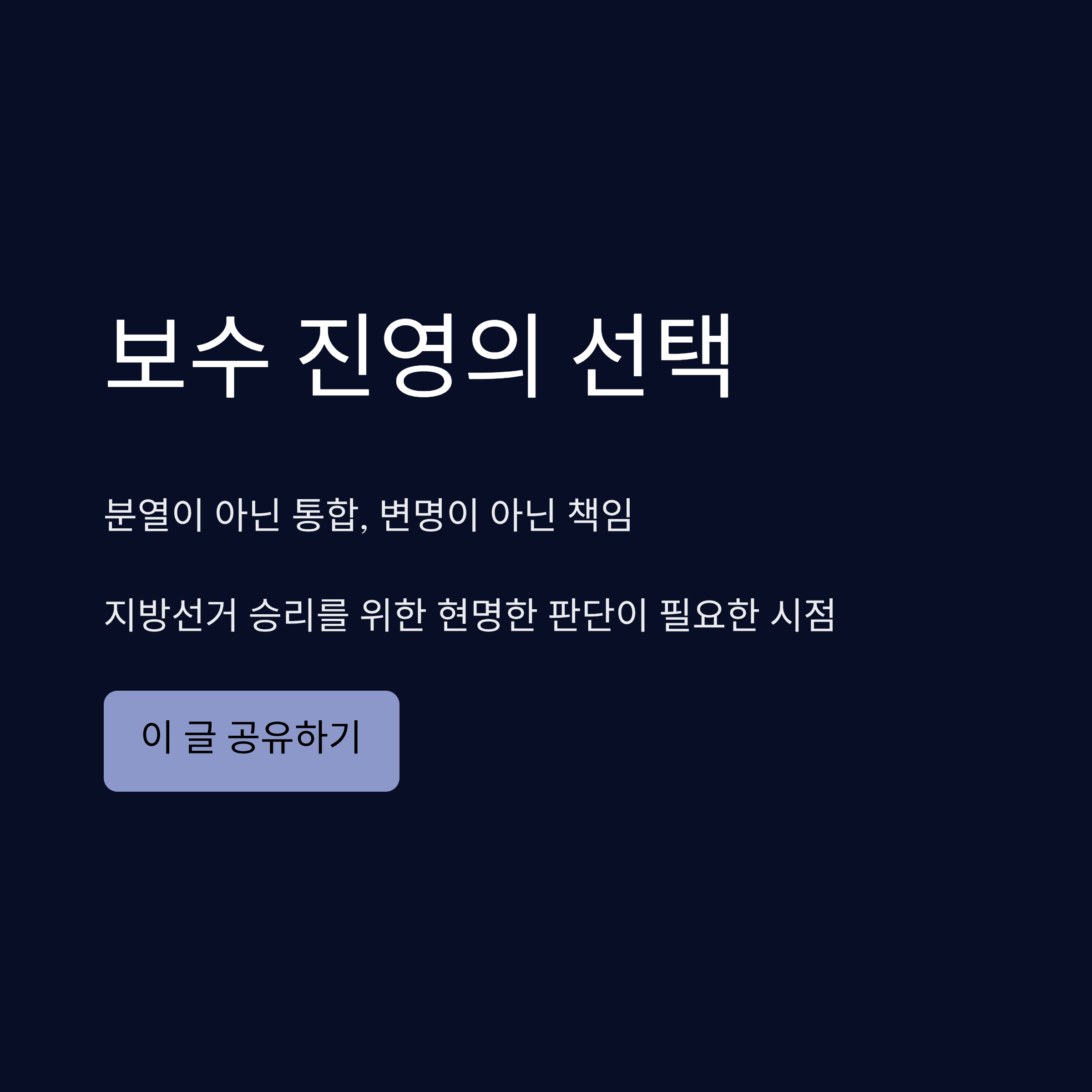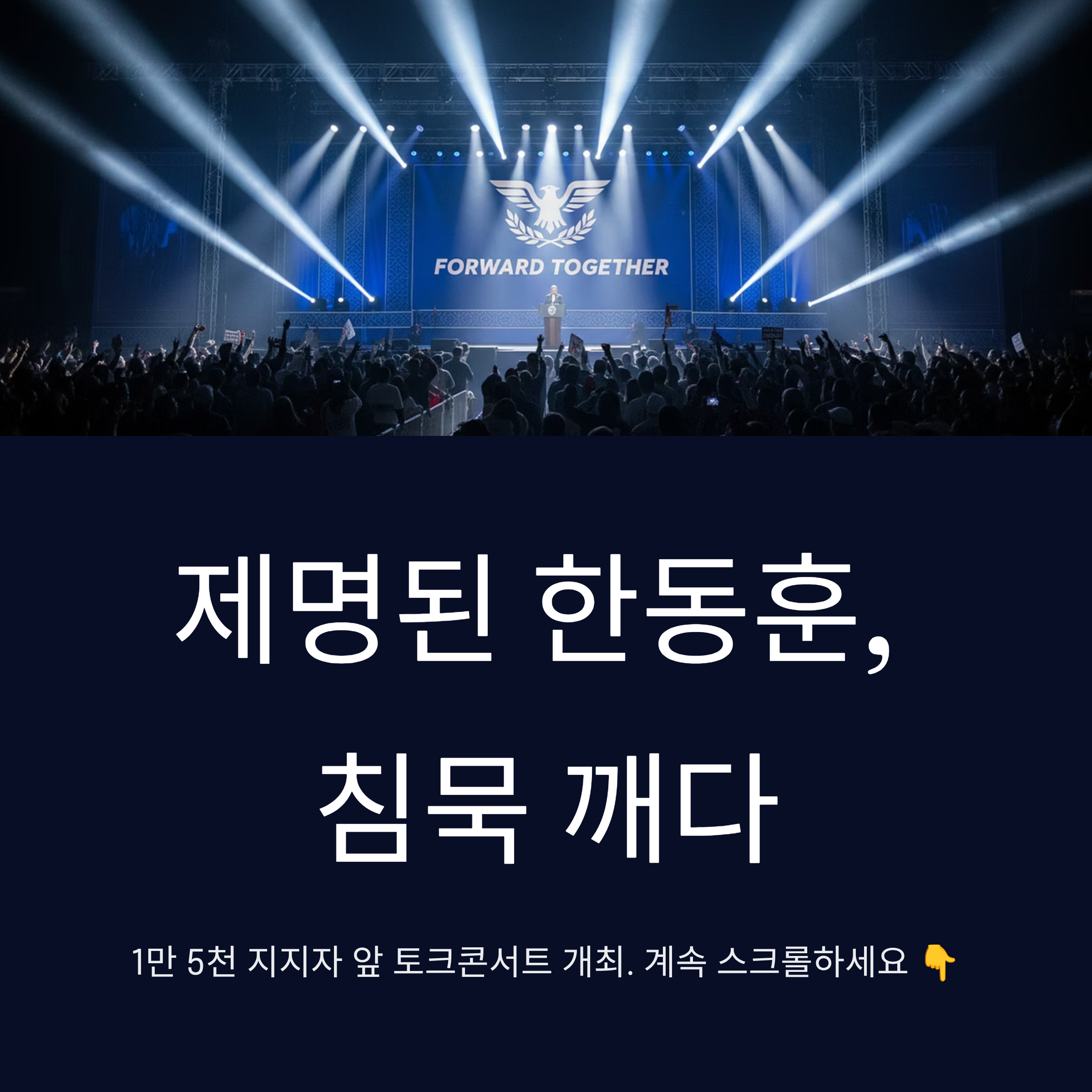 한동훈 전 대표의 토크 콘서트는 보수 진영의 화합보다는 갈등의 골을 깊게 만드는 자리였습니다. 윤석열 전 대통령 탄핵과 이재명 정권 탄생이라는 결과에 대해 당 대표를 지낸 인물로서 일말의 책임감이나 반성보다는, 억울함 호소와 지지층 결집을 통한 정치적 생존에만 몰두하는 모습을 보였습니다. 현재 국민의힘은 장동혁 대표를 중심으로 전열을 재정비해야 하는 중대한 시점에 놓여 있습니다. 한동훈의 이러한 '마이웨이' 행보는 당의 재건을 방해하는 해당 행위로 비칠 수 있습니다. 진정한 정치적 재기를 원한다면 맹목적인 팬덤 뒤에 숨을 것이 아니라, 제기된 의혹에 대한 투명한 소명과 처절한 자기 객관화가 선행되어야 할 것입니다.
