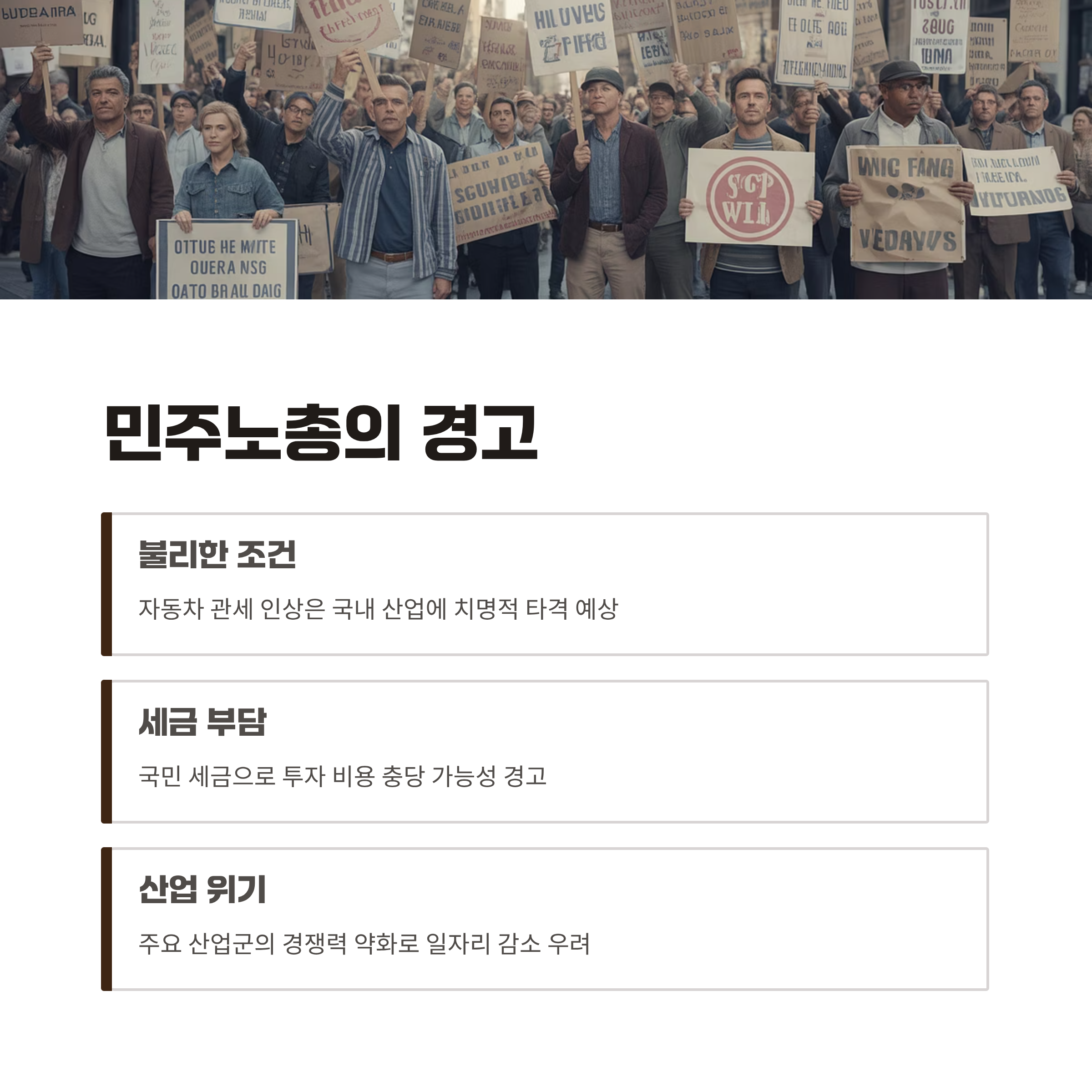 관련 태그: 관세협상, 대미투자, 자동차 관세, 민주노총, 외교정책, 통화스왑, 경제정책, 협상력
