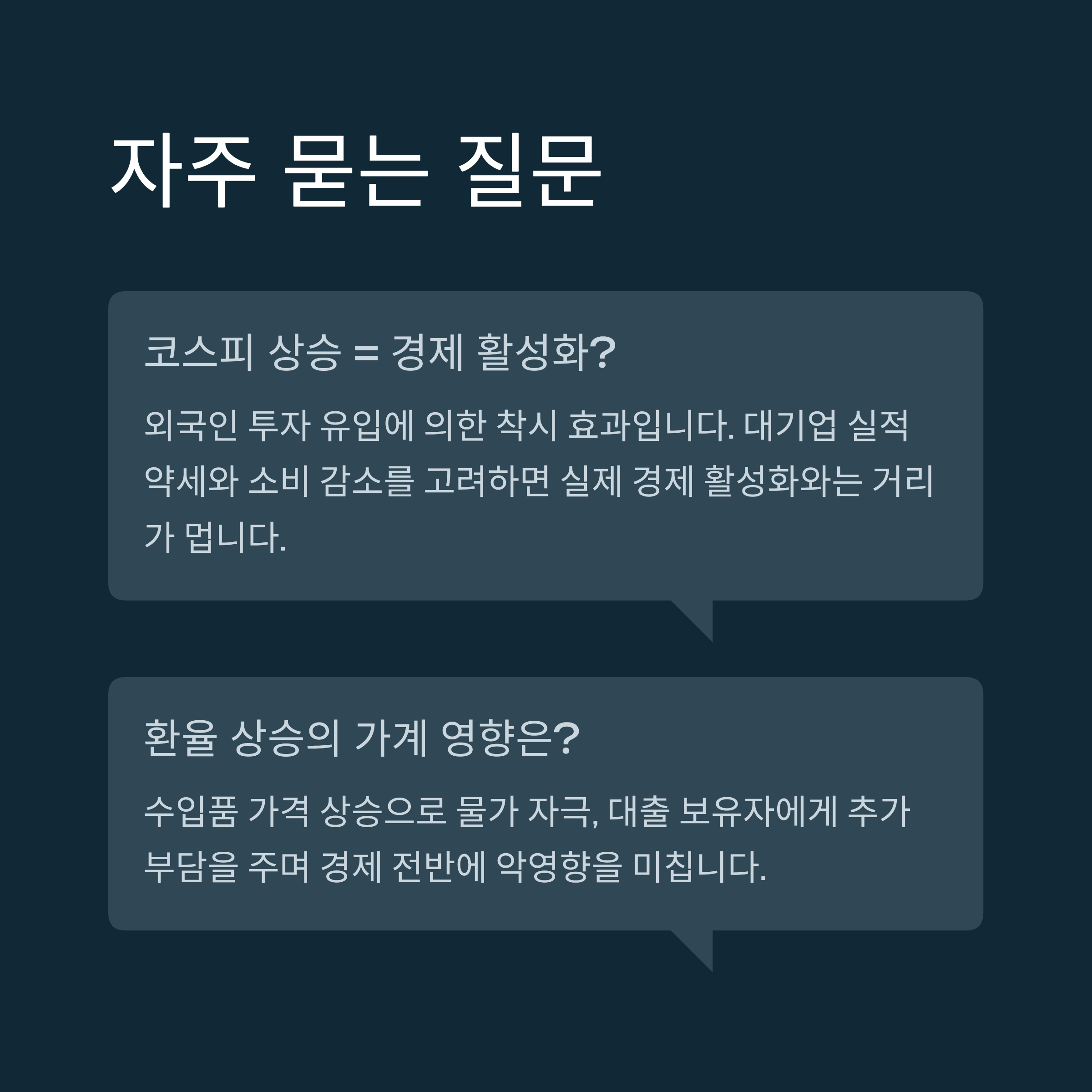 | Q. 코스피 상승이 실제로 경제 활성화로 연결되나요? |