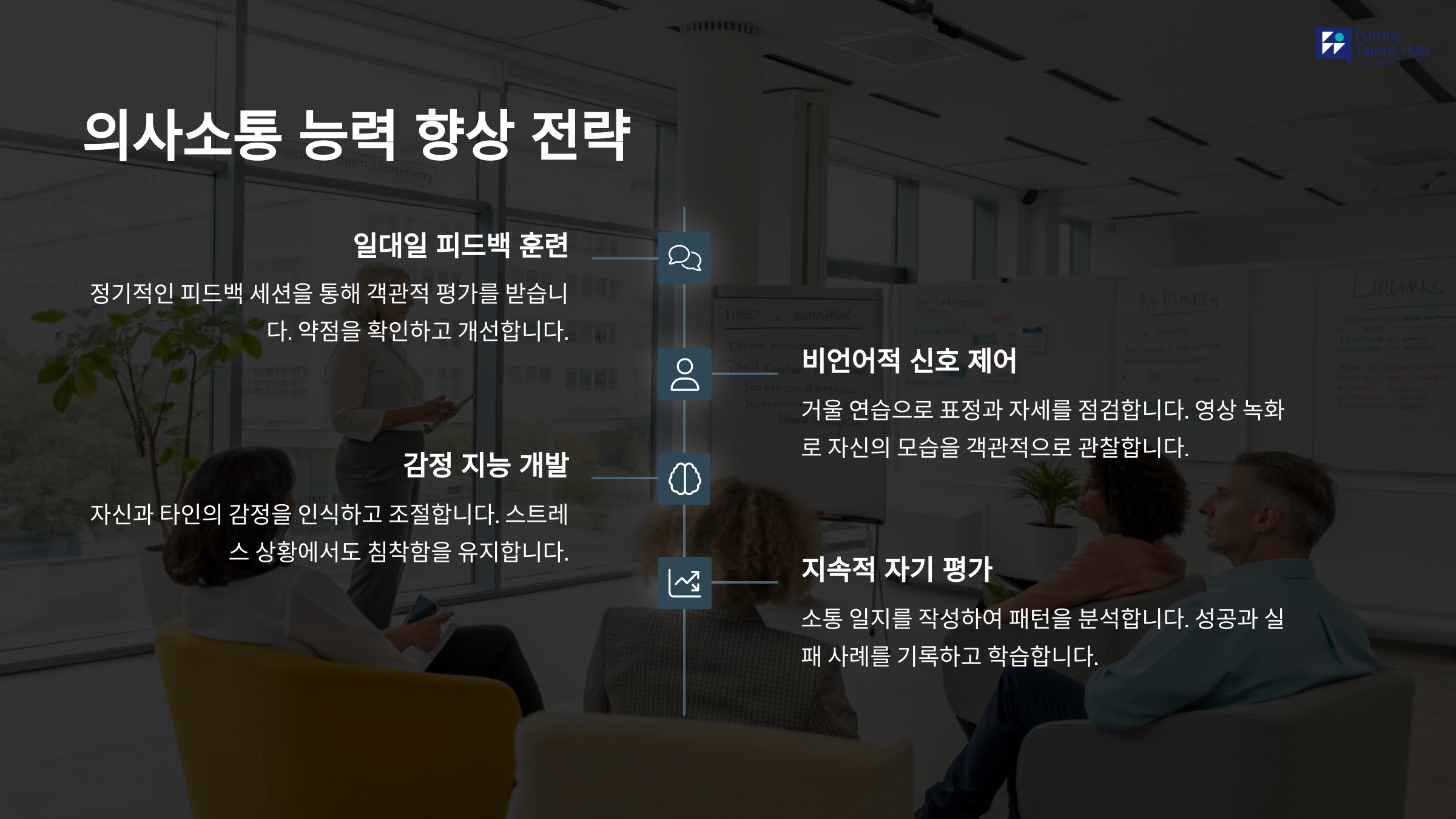 의사소통스킬, 적극적경청, 커뮤니케이션전략, 비언어적표현, 조직내소통, 팀워크향상, 신뢰구축