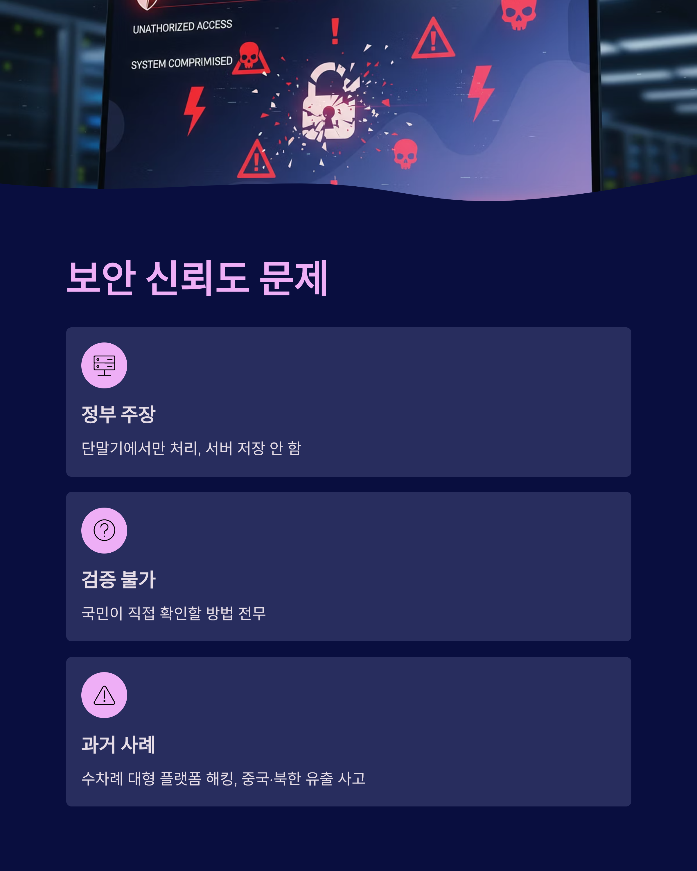 신뢰성 부재: 통신사와 정부는 데이터 즉시 삭제를 주장하지만, 잦은 개인정보 유출 사고를 겪은 국민 입장에서 이를 검증할 방법도, 신뢰할 근거도 부족하여 개인정보 유출 위험 경고가 계속되고 있습니다.