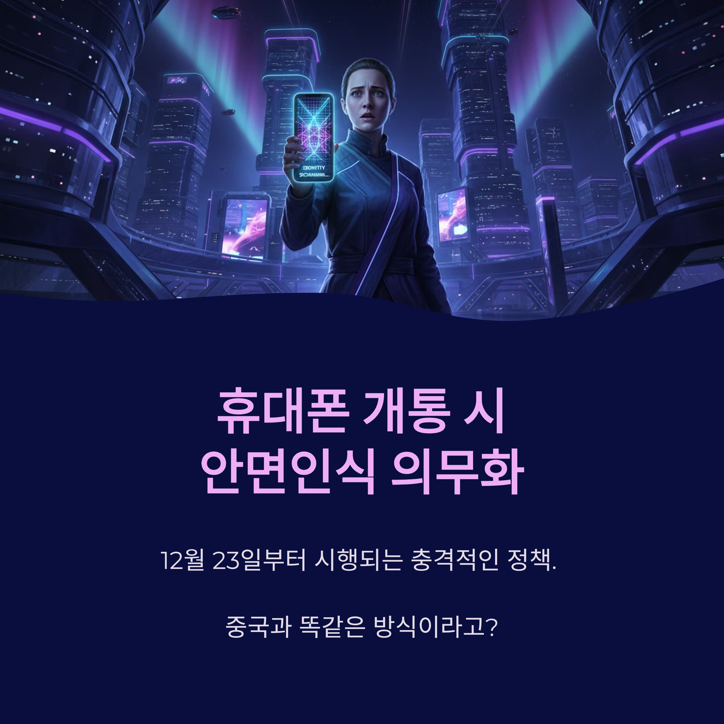 | A. 기존 신분증 확인 절차 외에, 필수적으로 안면인식(얼굴 스캔) 과정을 거쳐야만 휴대폰 개통이 가능해집니다. 이는 명의 도용 방지와 대포폰 근절을 위한 조치로 도입되지만, 선택이 아닌 필수 사항이라는 점에서 논란이 되고 있습니다. |