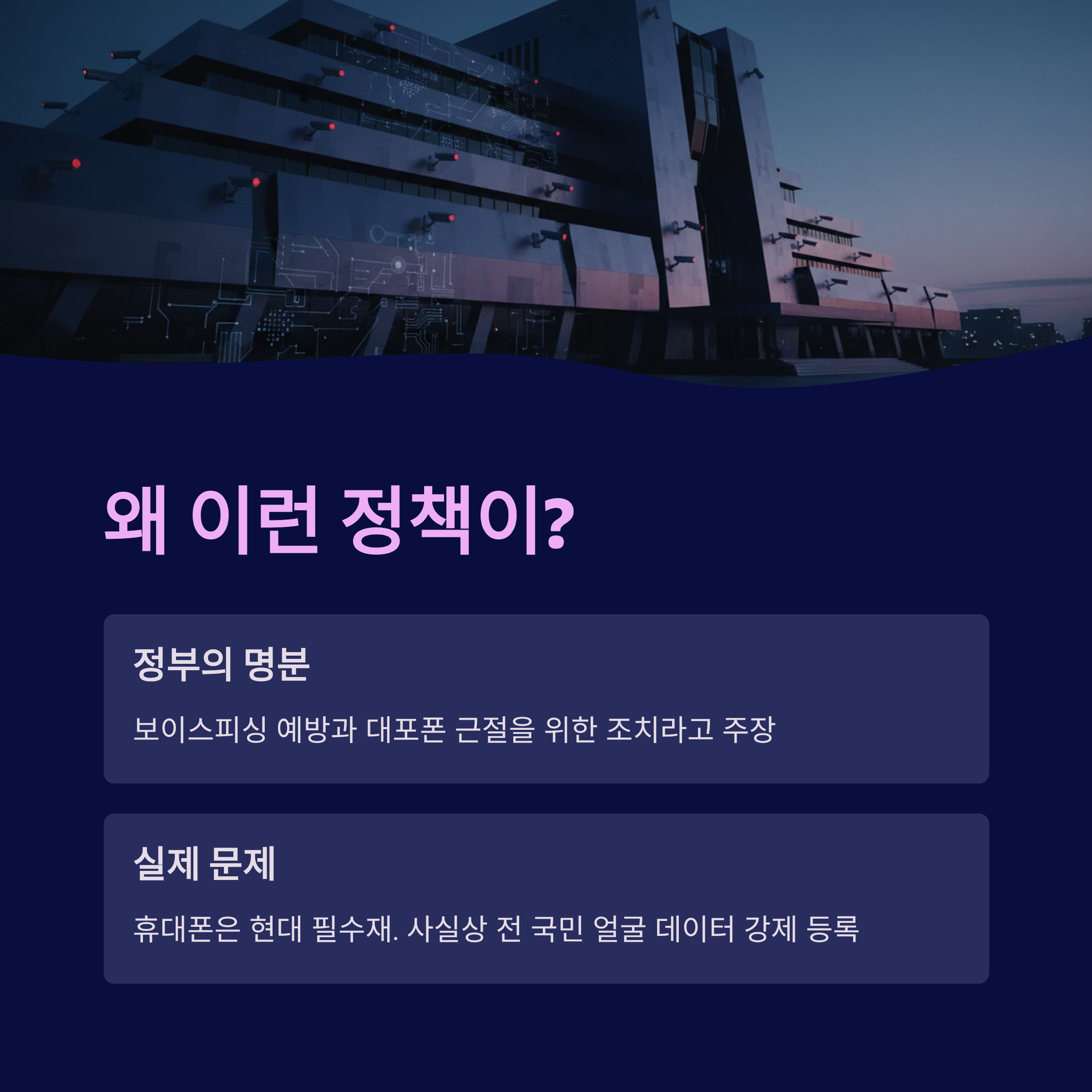 정책의 명분과 한계: 정부는 보이스피싱과 대포폰 차단을 목적으로 내세우지만, 실제 범죄는 개통 이후 단말기 탈취나 해킹으로 이루어지므로 휴대폰 개통 시 안면인식 의무화는 예방 효과가 제한적입니다.