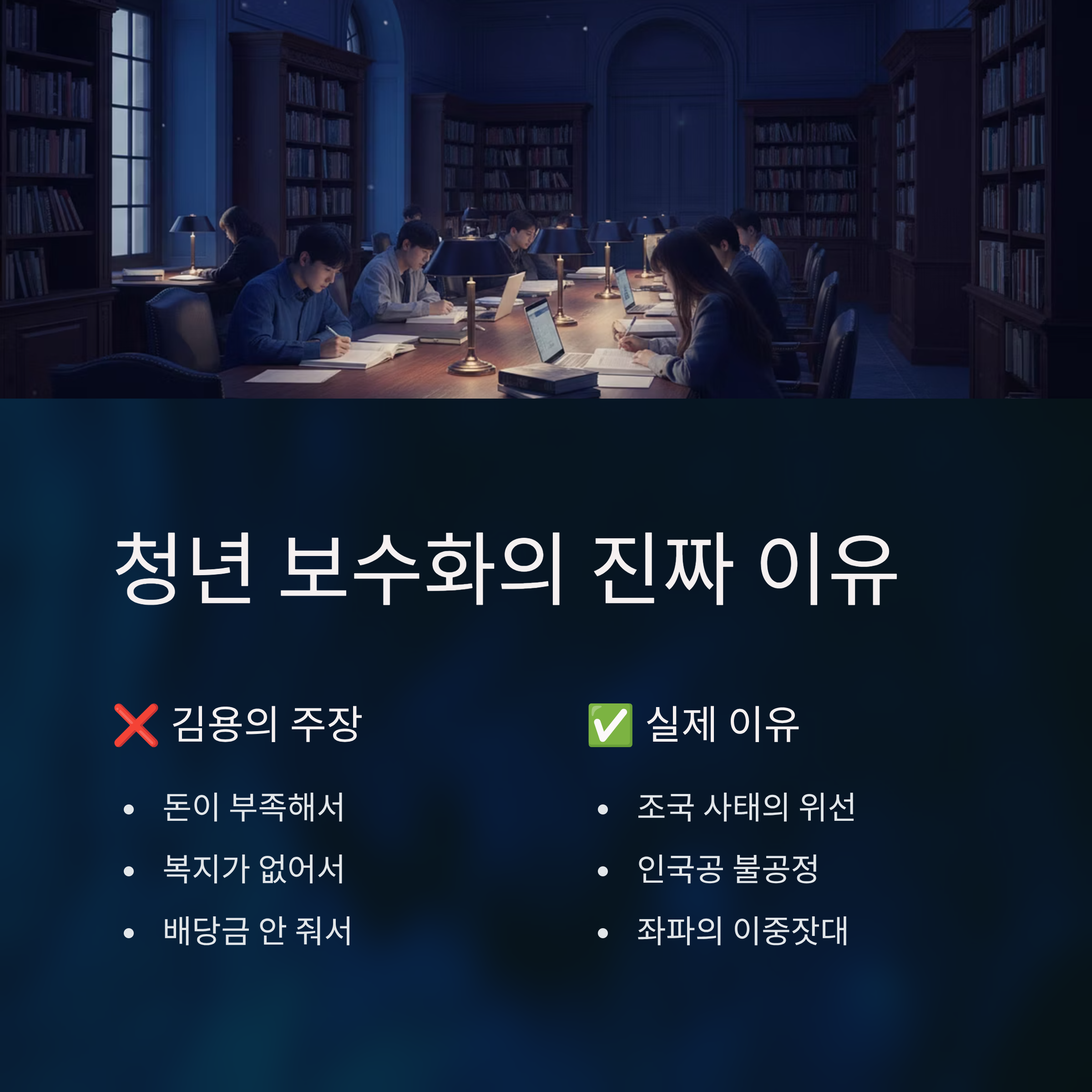 청년 보수화 현상을 정당의 위선과 불공정 정책으로 인한 결과로 이해해야 한다.
