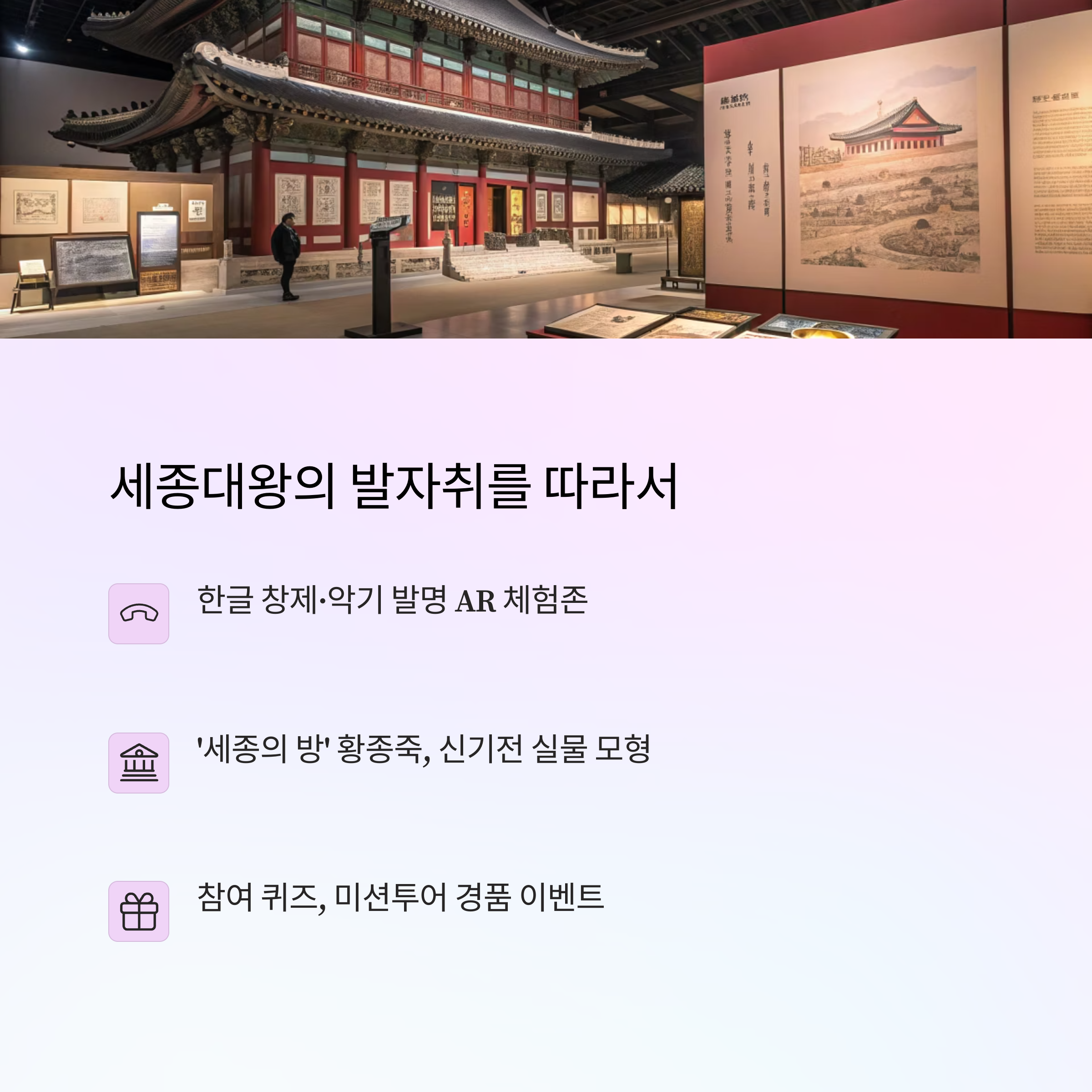 특히, 세종 대왕 업적 체험 프로그램은 관람객들에게 재미와 역사적 교육을 동시에 제공합니다.