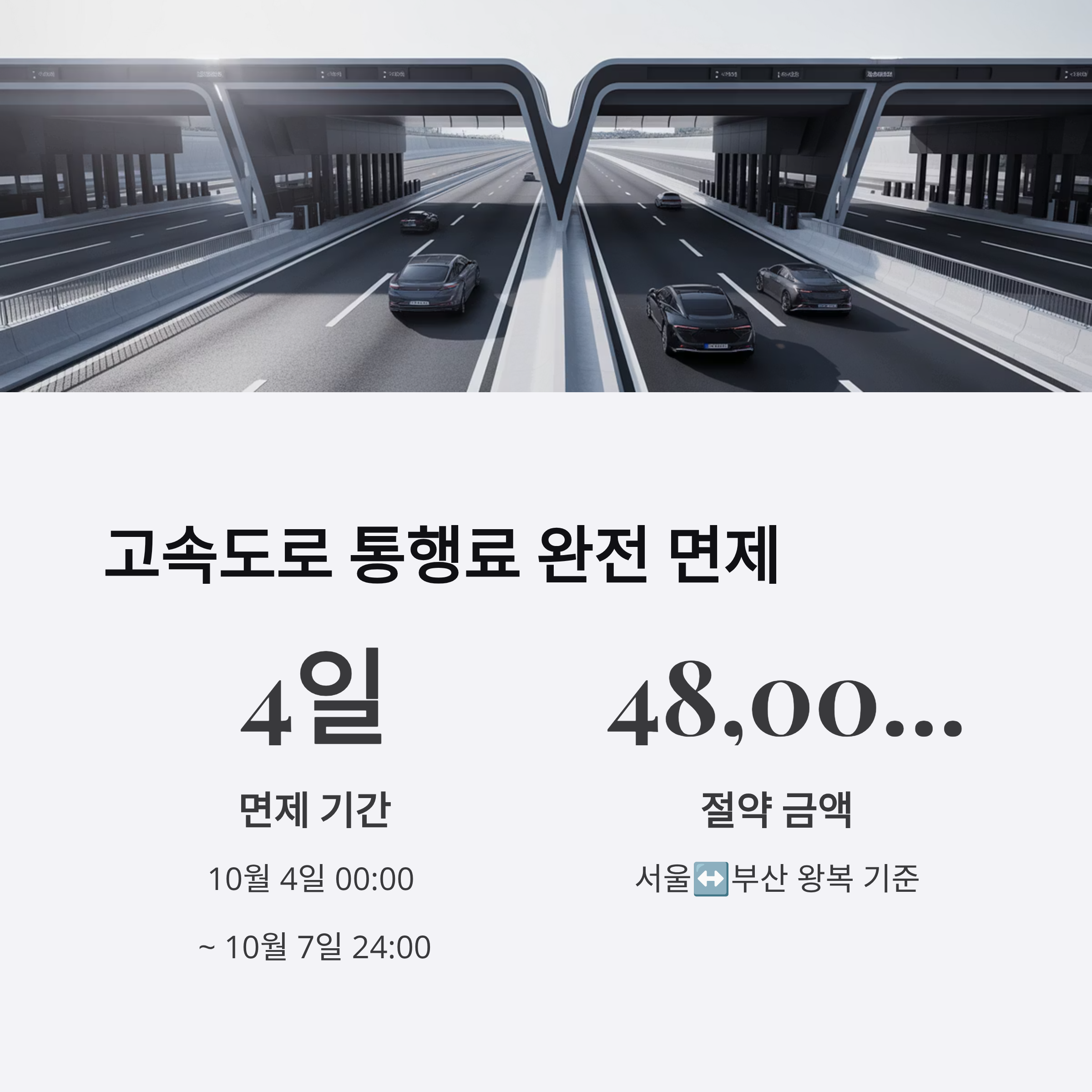 2025 추석 고속도로 통행료 면제 정보 총정리