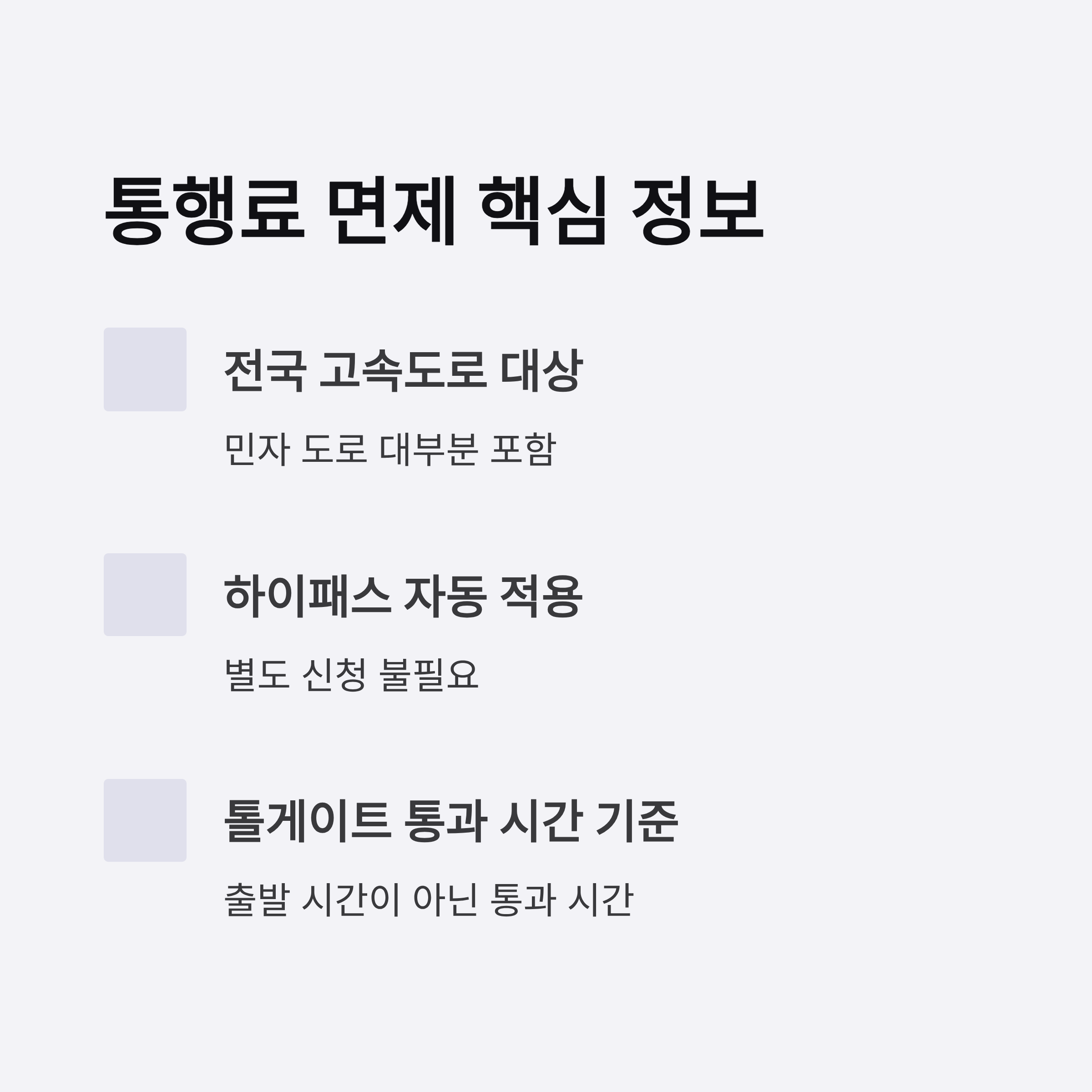• 적용 기준: ‘출발 시간’이 아닌 ‘톨게이트 통과 시간’