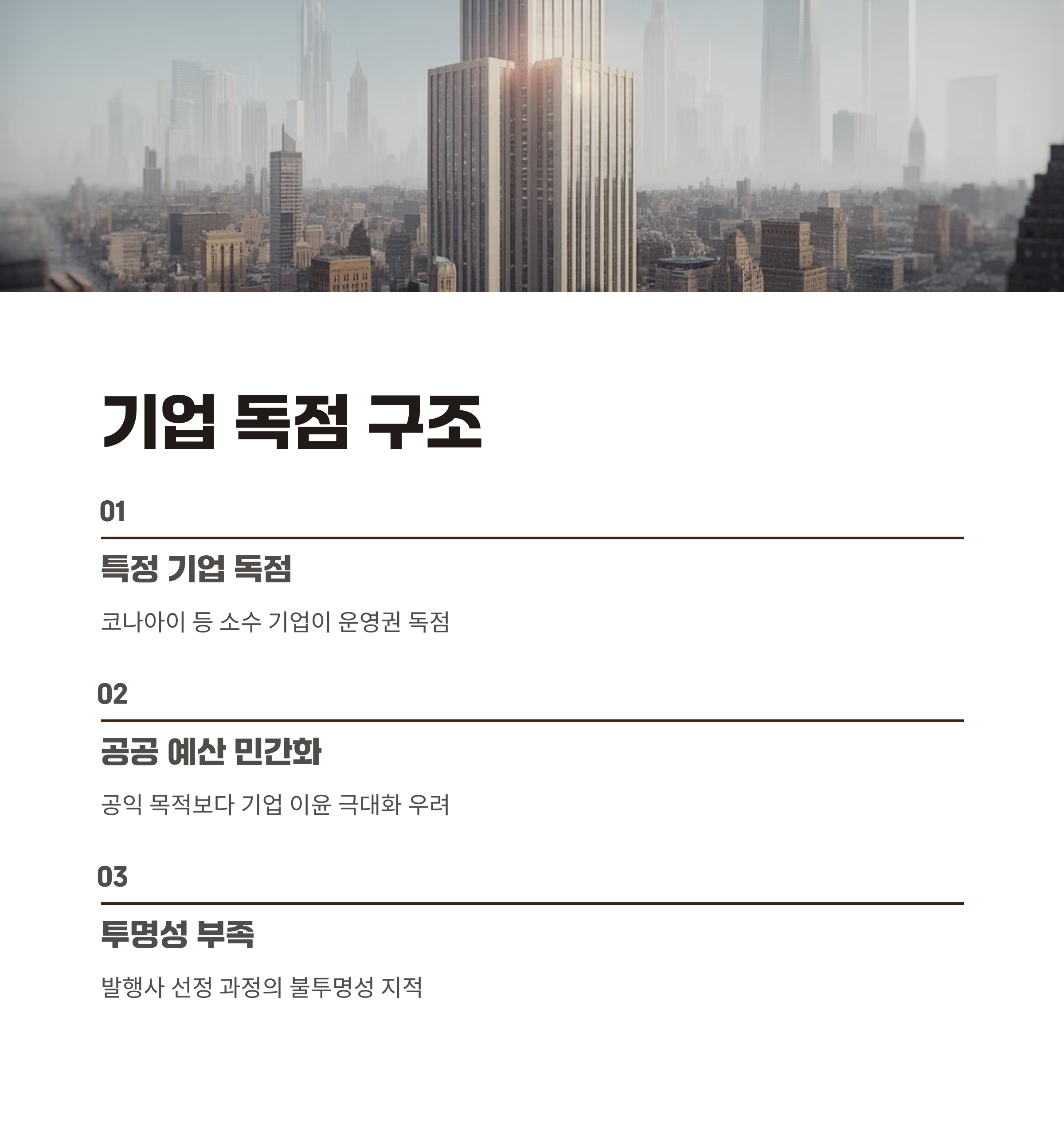 이와 함께 특정 기업 독점 논란과 세금 형평성 관련 문제점도 큰 쟁점으로 떠오르고 있습니다.