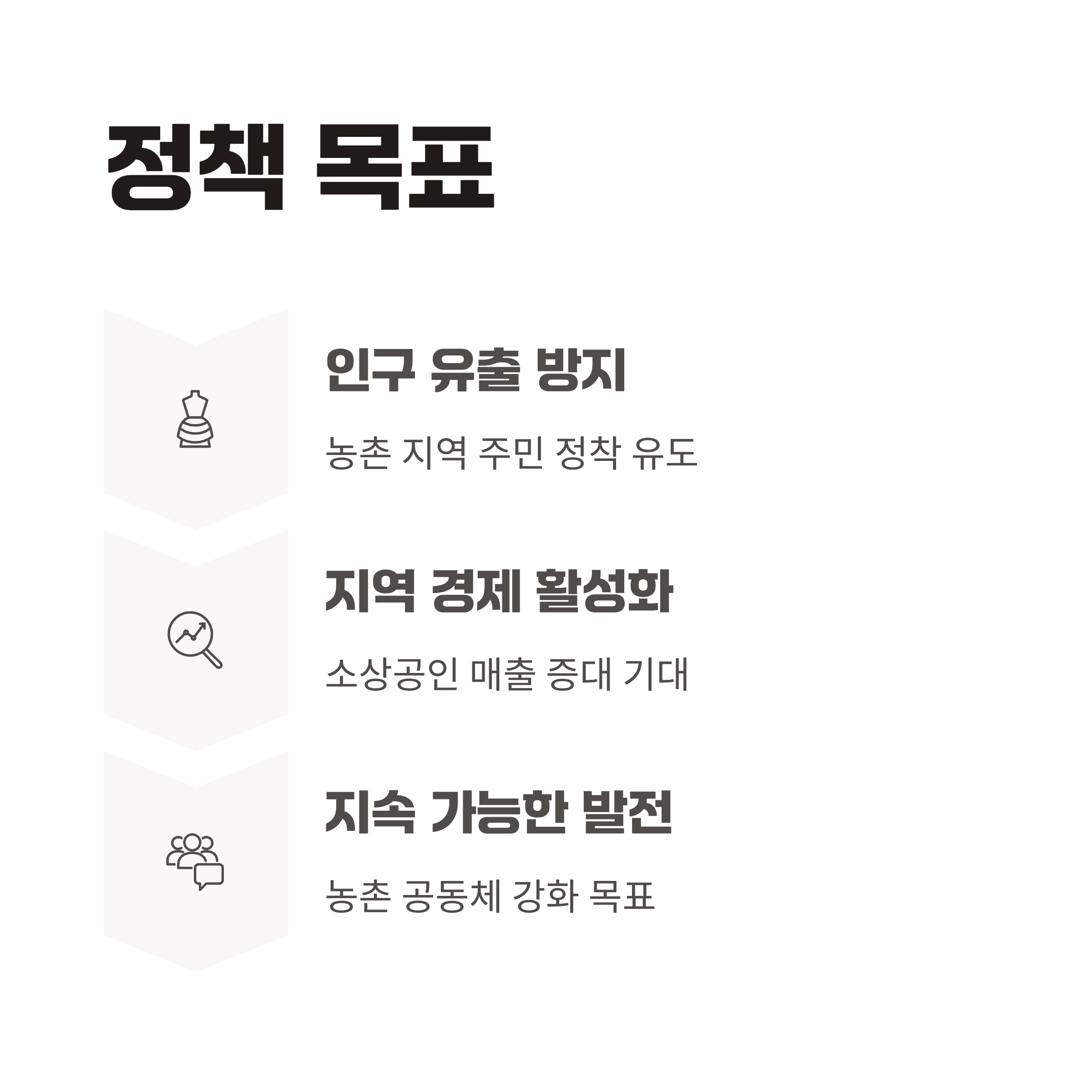 매달 15만 원 지역화폐 지급 정책은 농촌 인구 유입과 지역 경제 활성화라는 의도를 가지고 시행됐습니다.