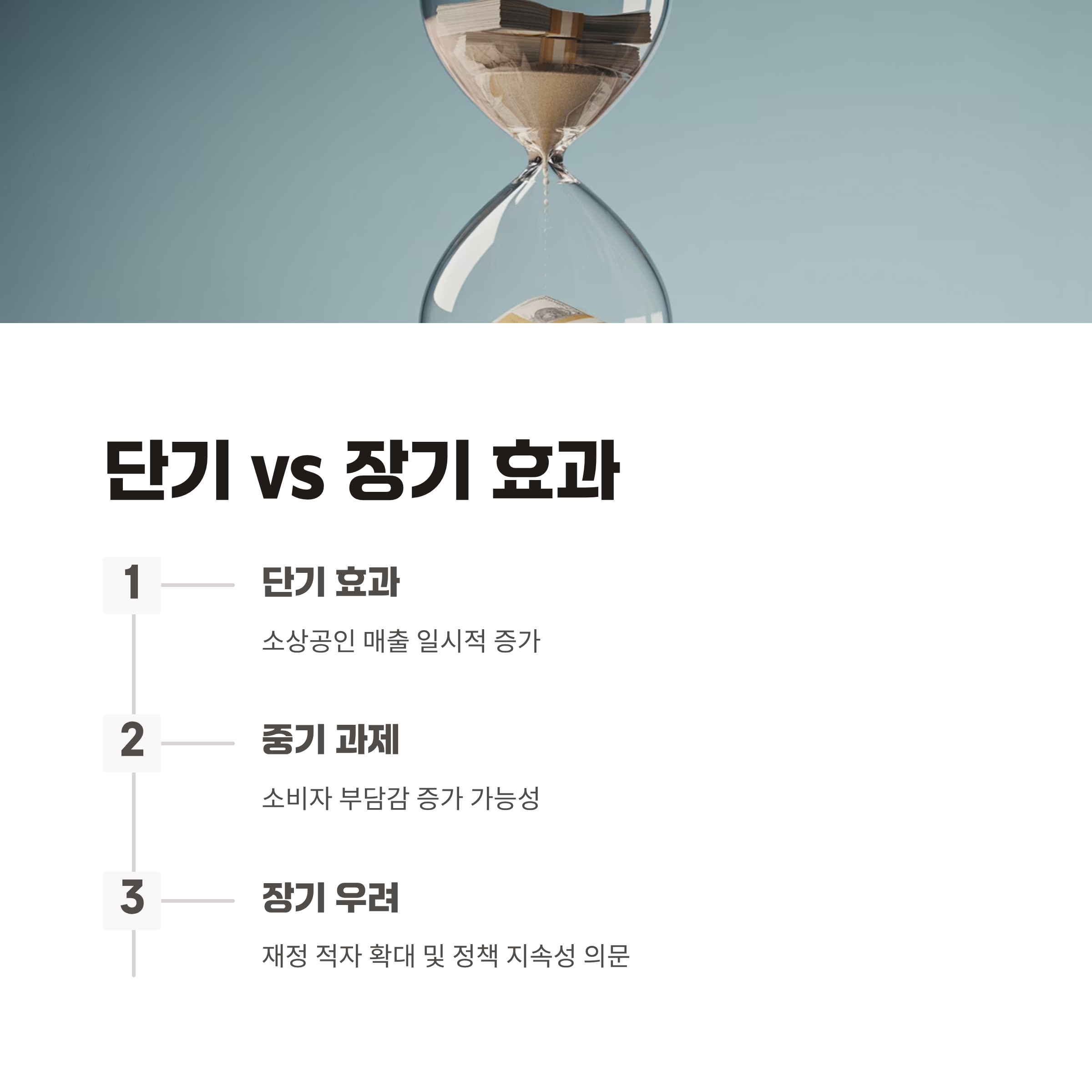 특히 장기적인 경제 성장으로 이어지는 구체적인 계획 없이 계속해서 예산이 투입된다면, 정책 자체가 일시적 편의를 제공하는 '미봉책'에 그칠 가능성이 높습니다. 궁극적으로는 정부의 재정 적자가 확대되고, 다른 주요 정책에 쓰여야 할 세금이 효율적으로 활용되지 못하는 부작용을 초래할 수 있습니다.