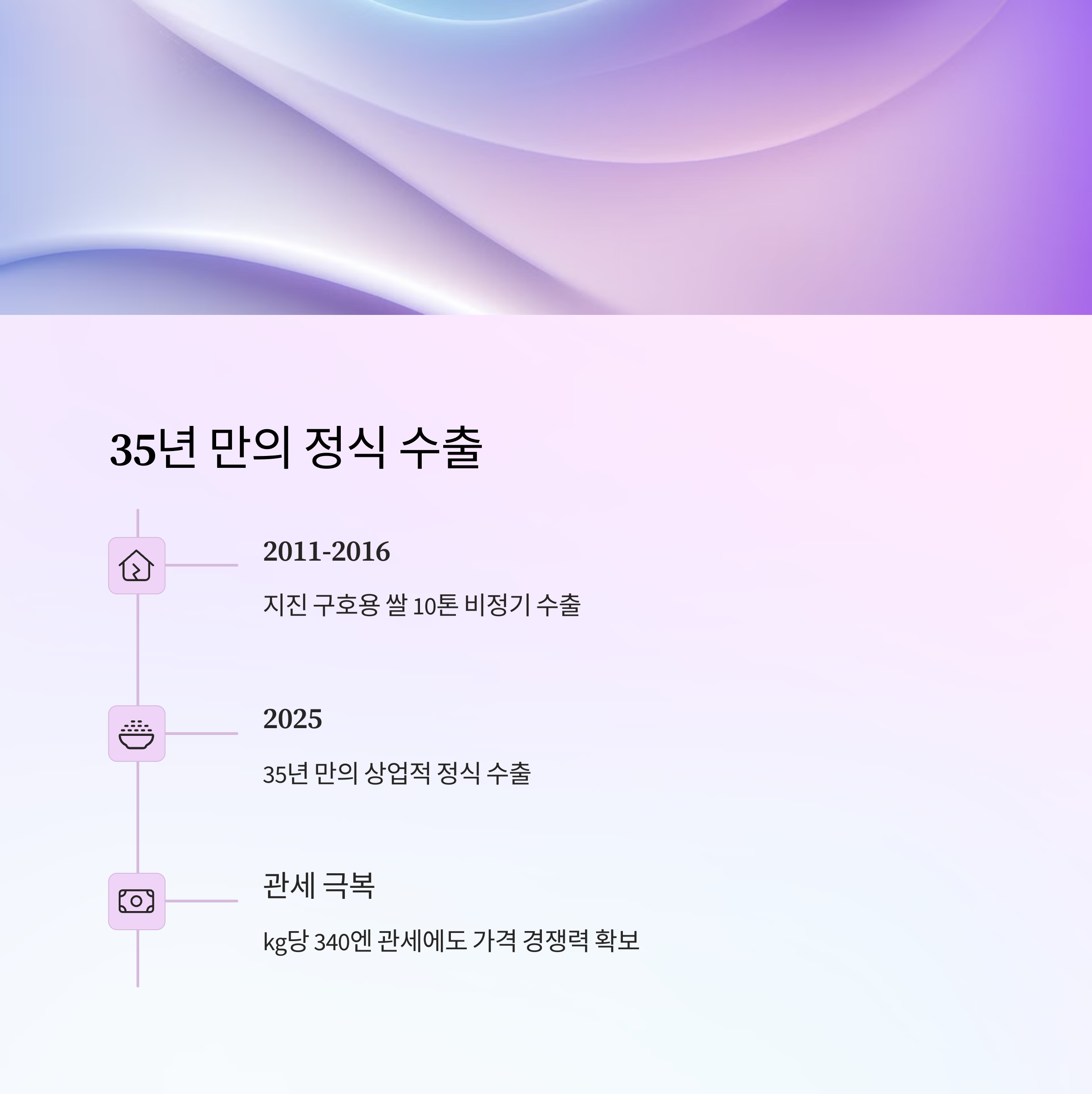 1. 2025년 4월 8일, 한국산 쌀 2톤이 일본에 처음 수출되었으며, 이는 약 35년 만의 재수출 성과입니다.