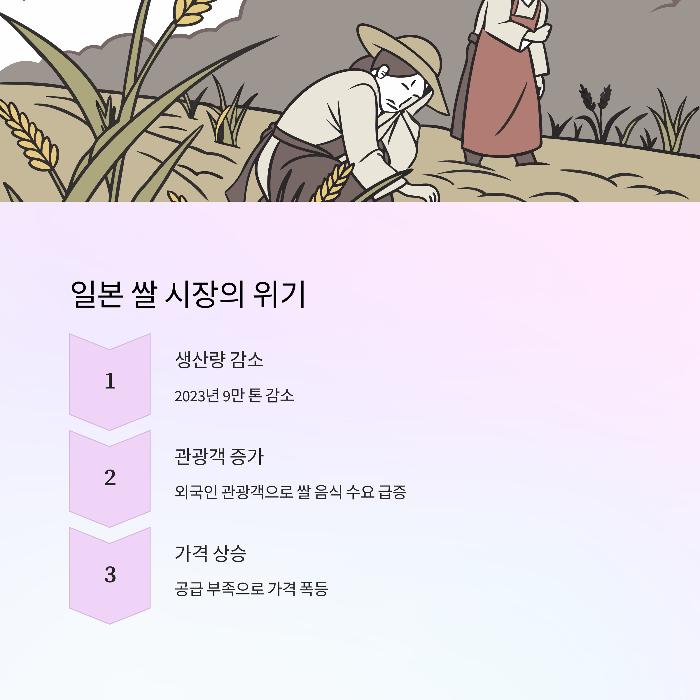 3. 일본에서 외국 관광객 증가로 인해 쌀 음식 소비량이 급증하며, 수요와 공급 불균형이 심화되고 있습니다.