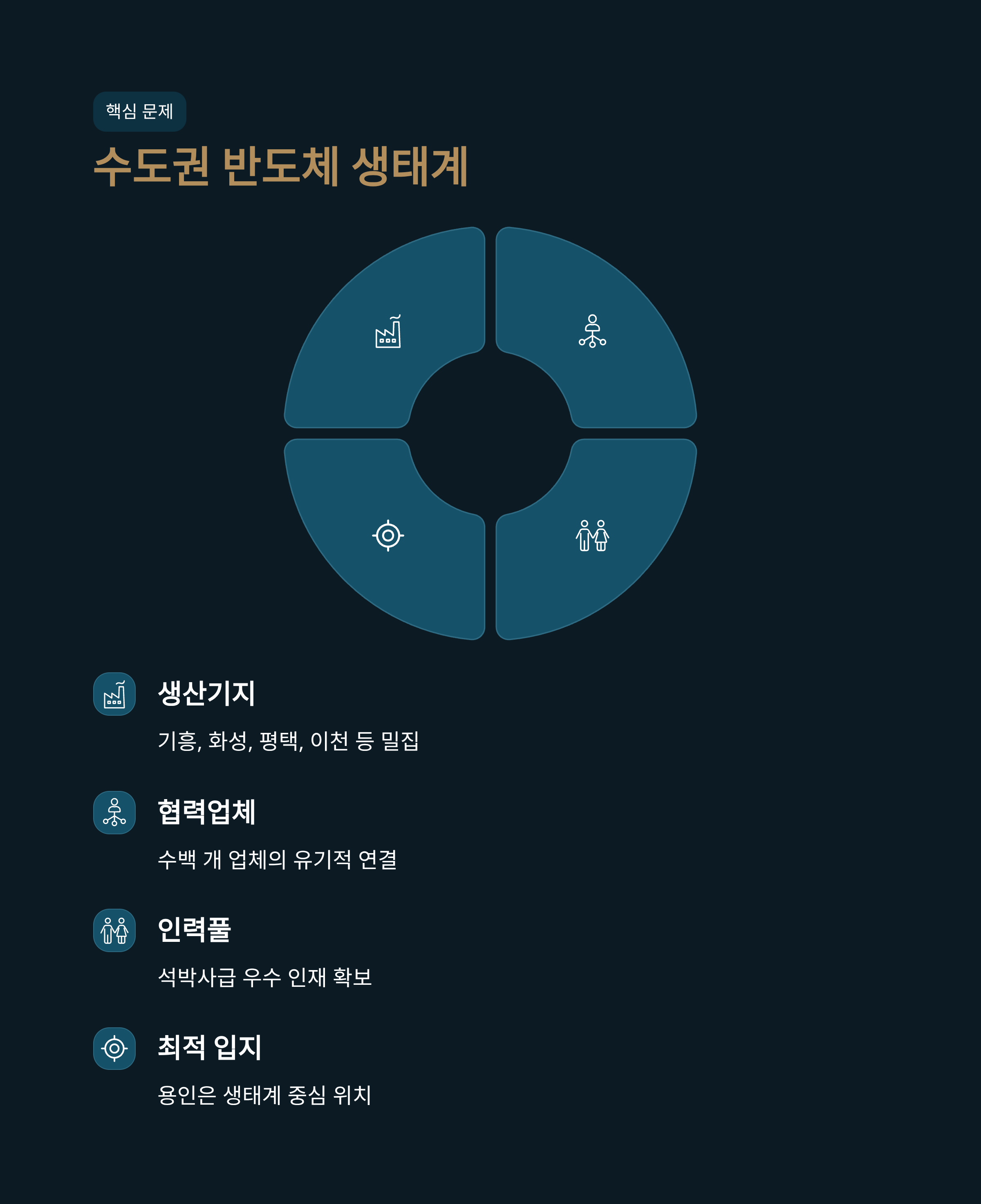 | A. 수도권에 형성된 반도체 협력업체 생태계를 파괴하고, 우수 인력 확보를 어렵게 만들어 K-반도체의 글로벌 경쟁력 자체를 약화시킬 수 있기 때문입니다. 이는 국가 경제 전체에 심각한 타격을 줄 수 있습니다. |