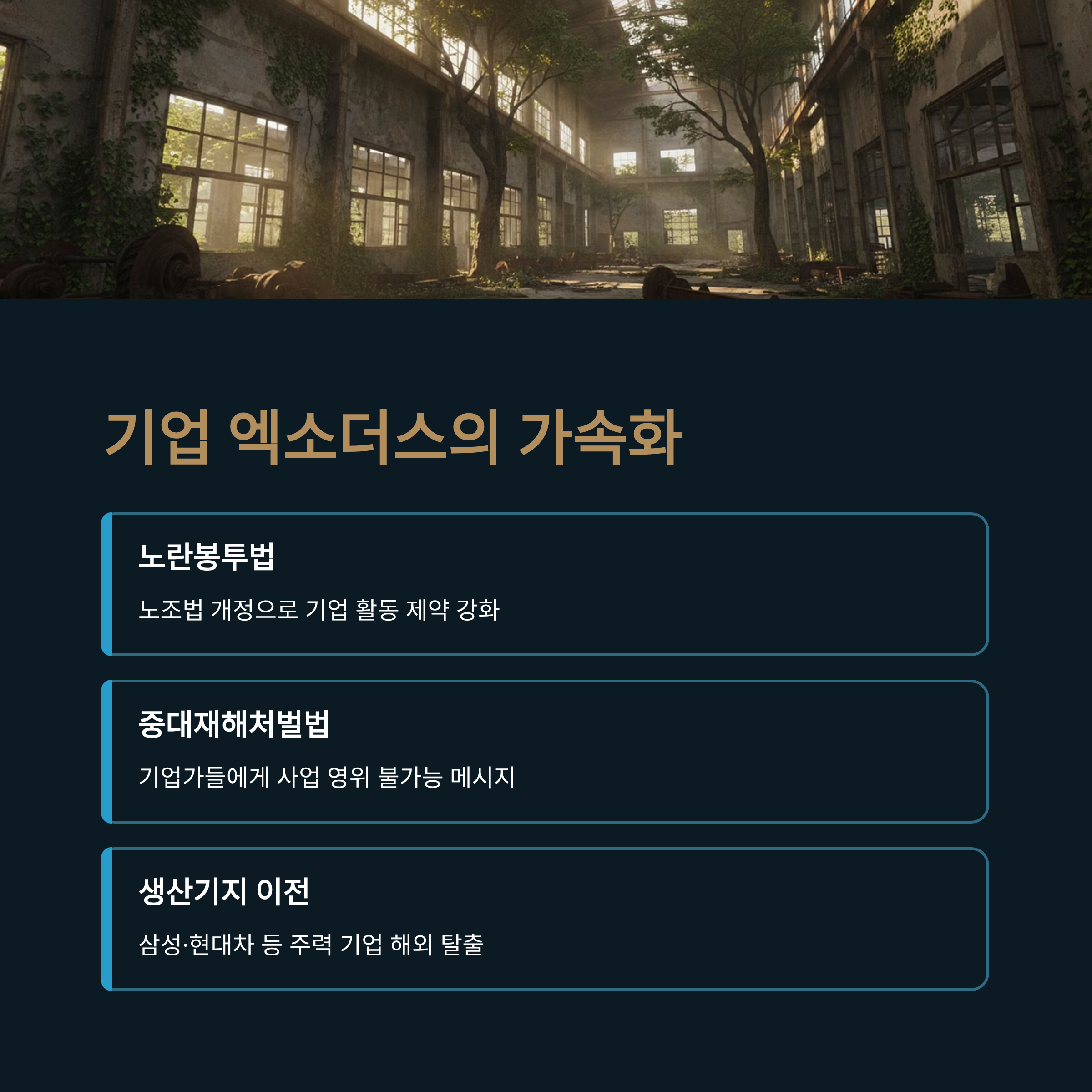 - - 기업 엑소더스: 반기업 정서와 규제가 부른 자본 유출