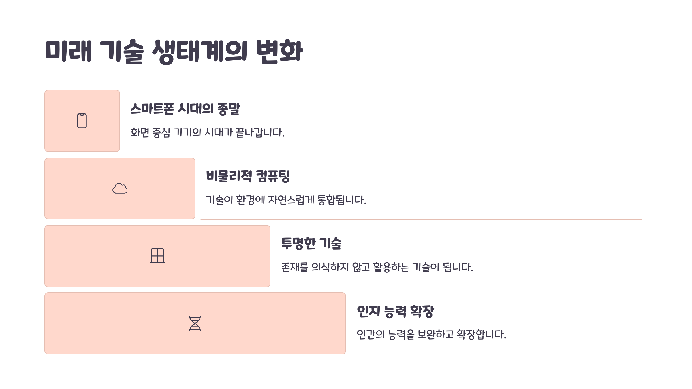 당장은 일부 기능만 수행하지만, 점차 커뮤니케이션·정보 접근·일상 관리 등 주요 역할을 담당할 수 있습니다.