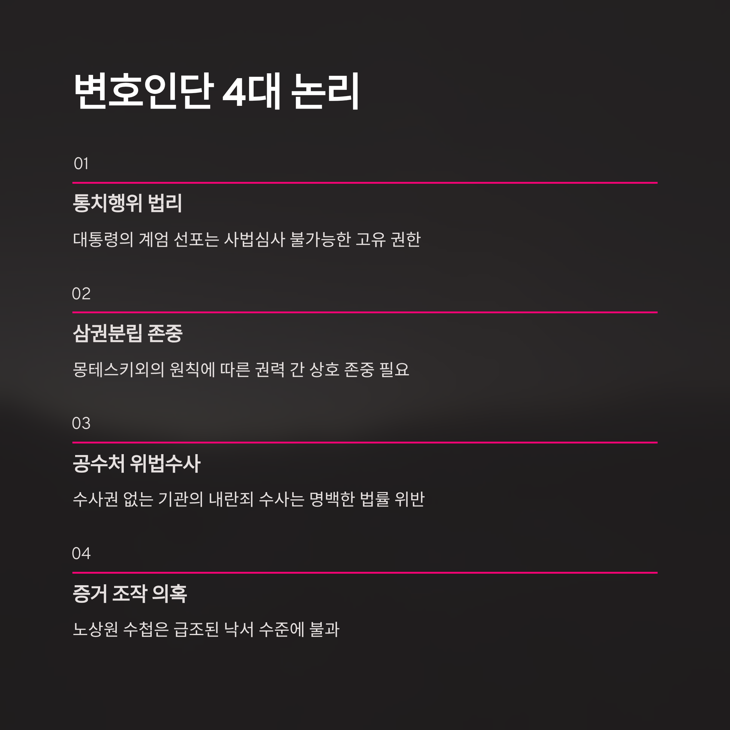 - 핵심요약: 변호인단 '통치행위' 주장 4대 논리