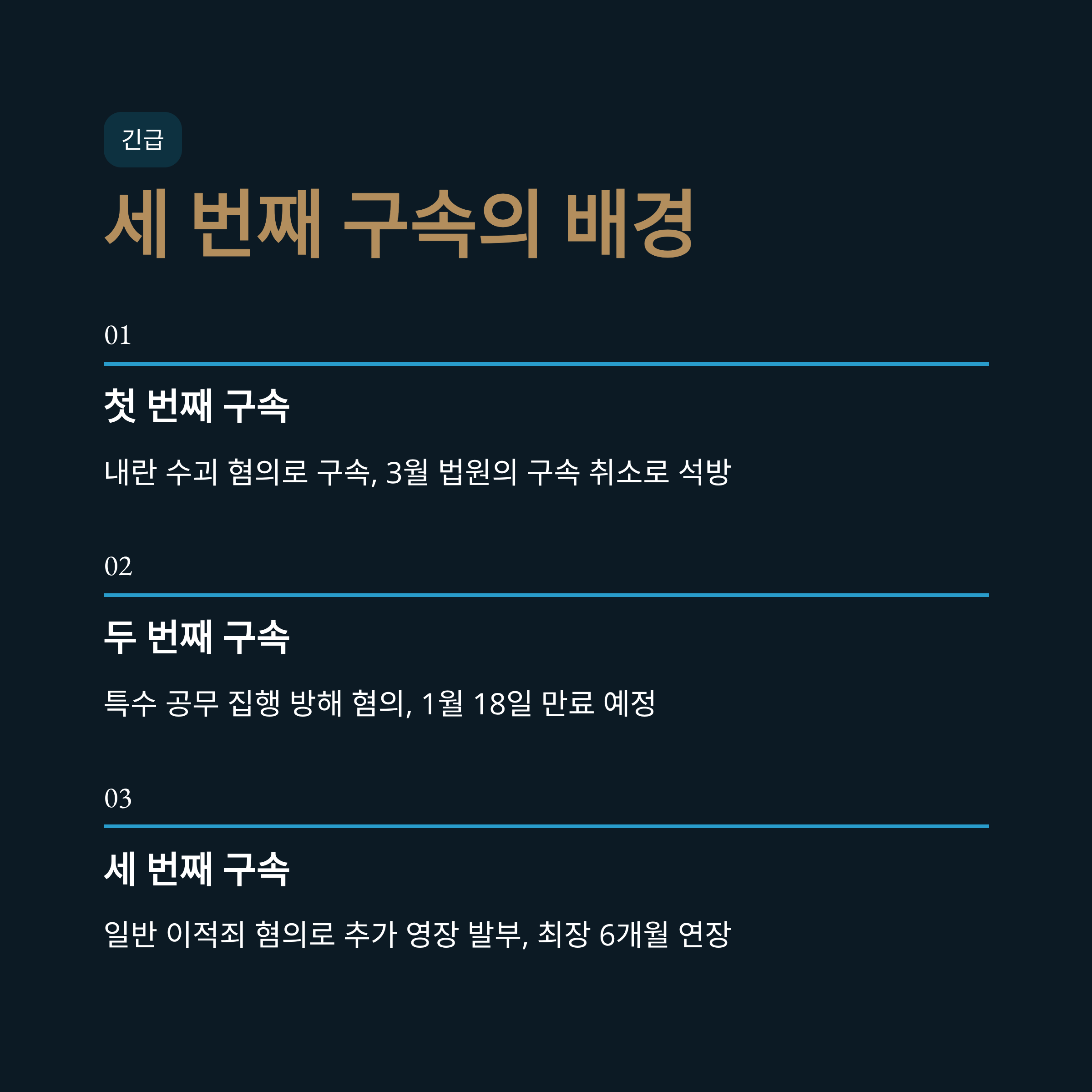 - 1. 서론: 끝나지 않는 구속, 세 번째 영장 발부의 배경