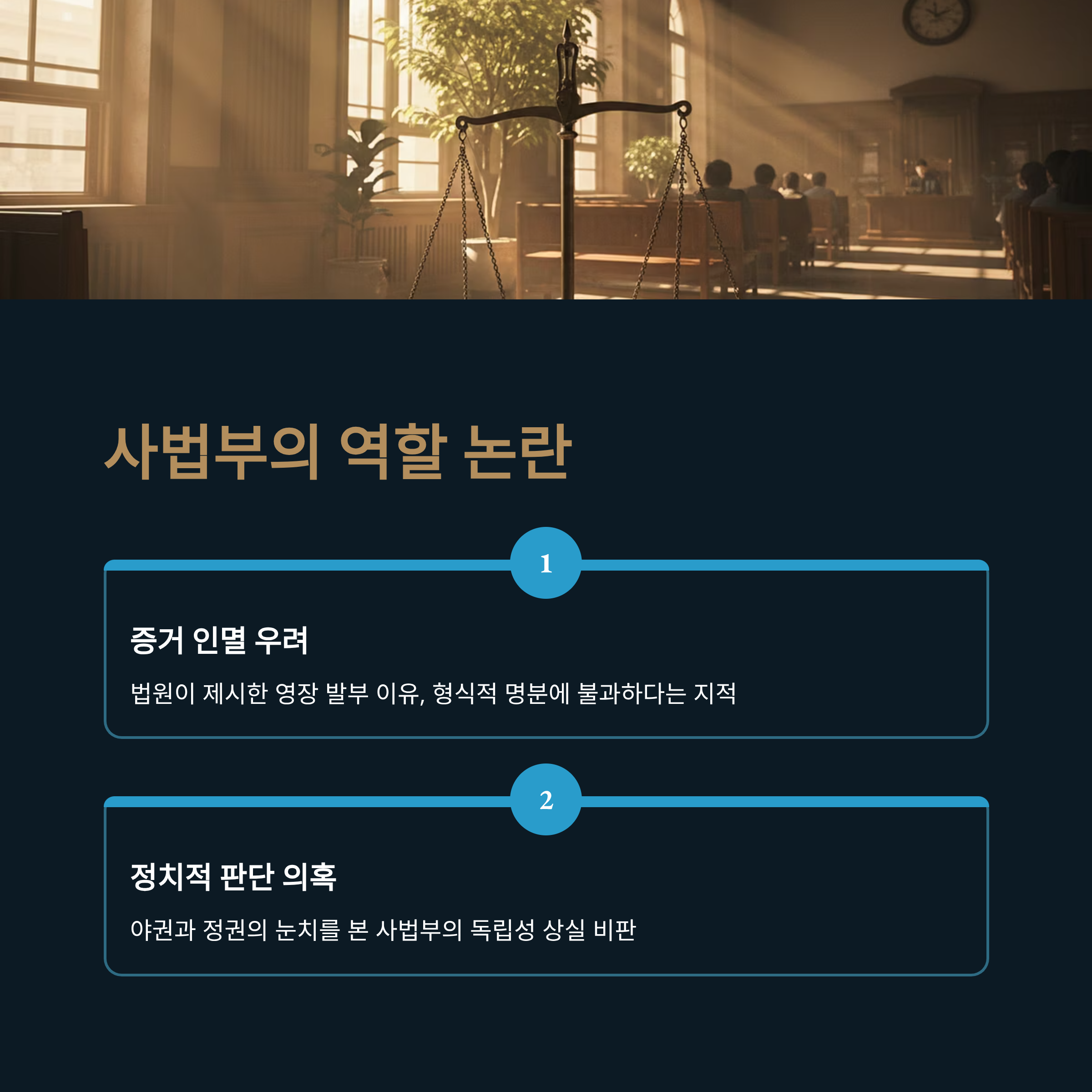 사법부 독립성 논란: 정권의 눈치를 보며 윤 전 대통령의 석방을 의도적으로 막고 있다는 사법부의 공정성 문제가 제기되고 있습니다.